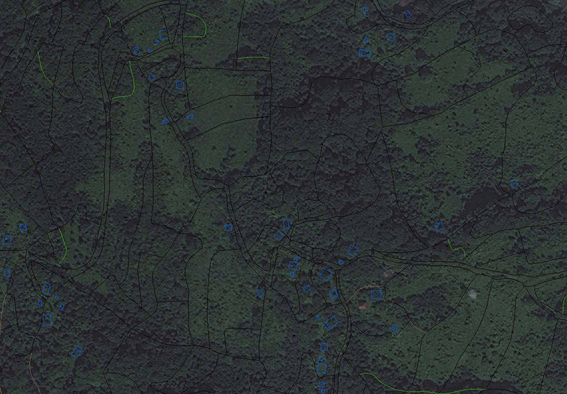 Na planovima koji su u prilogu vidljivo da najmanje 245 objekata ovog užeg područja od snimanja 1987. više ne postoji, odnosno nemaju krova. Onih par krovova što se vidi, svi su građeni poslije rata.