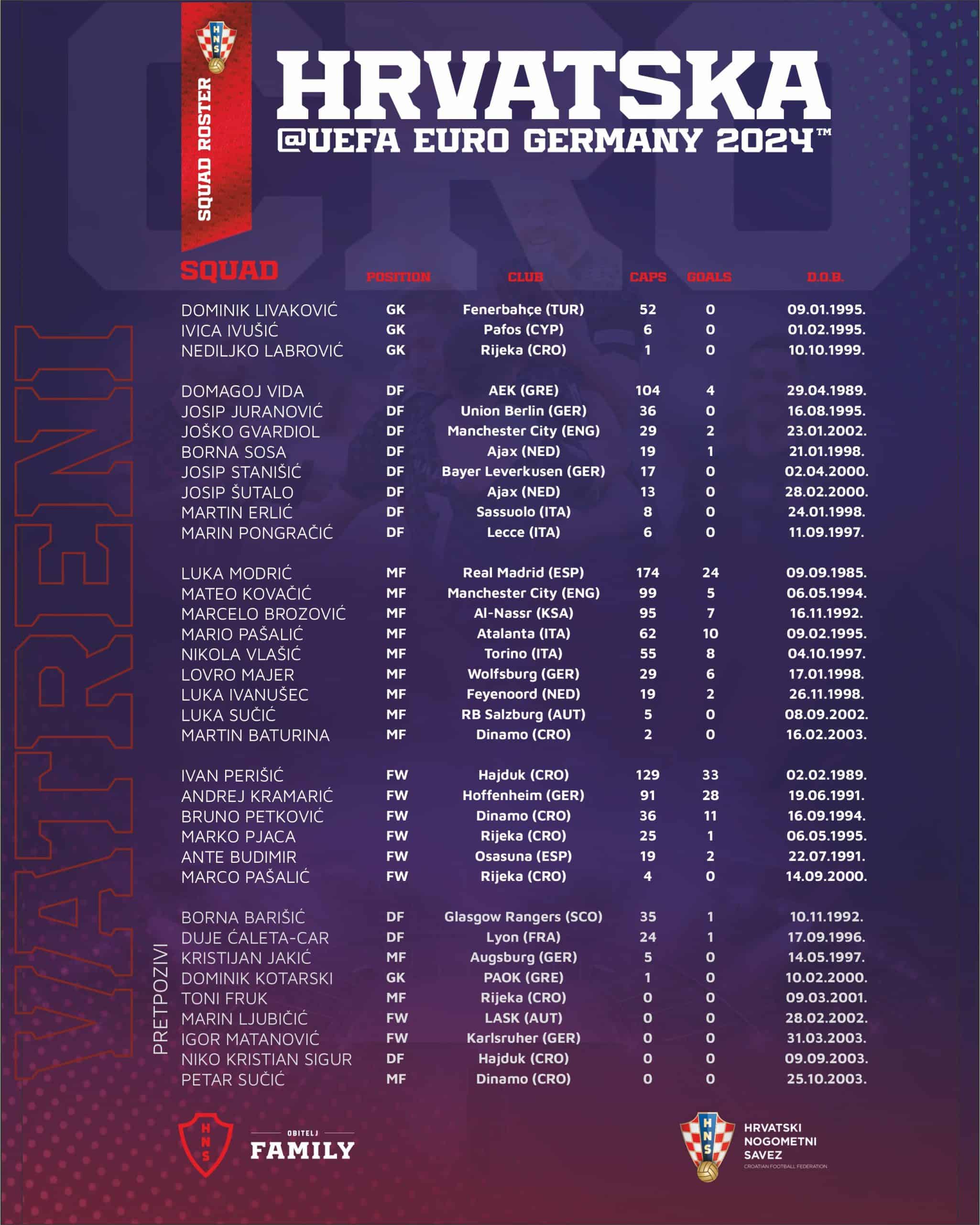 Pretpozivi: Borna Barišić (Rangers), Duje Ćaleta-Car (Lyon), Kristijan Jakić (Augsburg), Dominik Kotarski (PAOK), Toni Fruk (Rijeka), Marin Ljubičić (LASK), Igor Matanović (Karlsruhe), Niko Kristian Sigur (Hajduk), Petar Sučić (Dinamo).