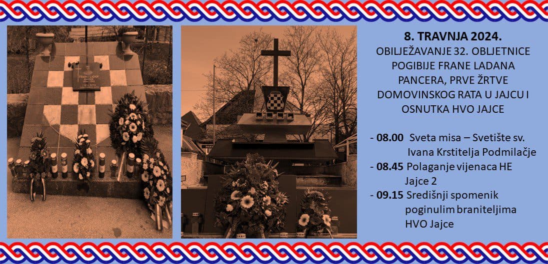 Krovna braniteljska udruga HVO Jajce, udruga “13.rujan” ove godine obilježava 32. obljetnicu pogibije Frane Ladana Pancera, prve žrtve domovinskog rata u jajačkom kraju i obljetnicu osnutka HVO Jajce.