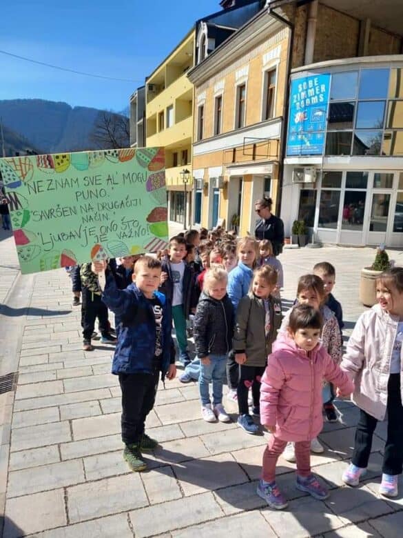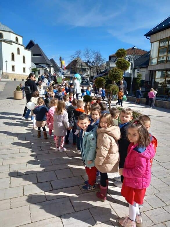 Šetnjom i igrom, postavljenjem šarenih čarapa djeca dječjeg vrtića Bare obilježila su danas svjetski dan osoba s Down sindromom.