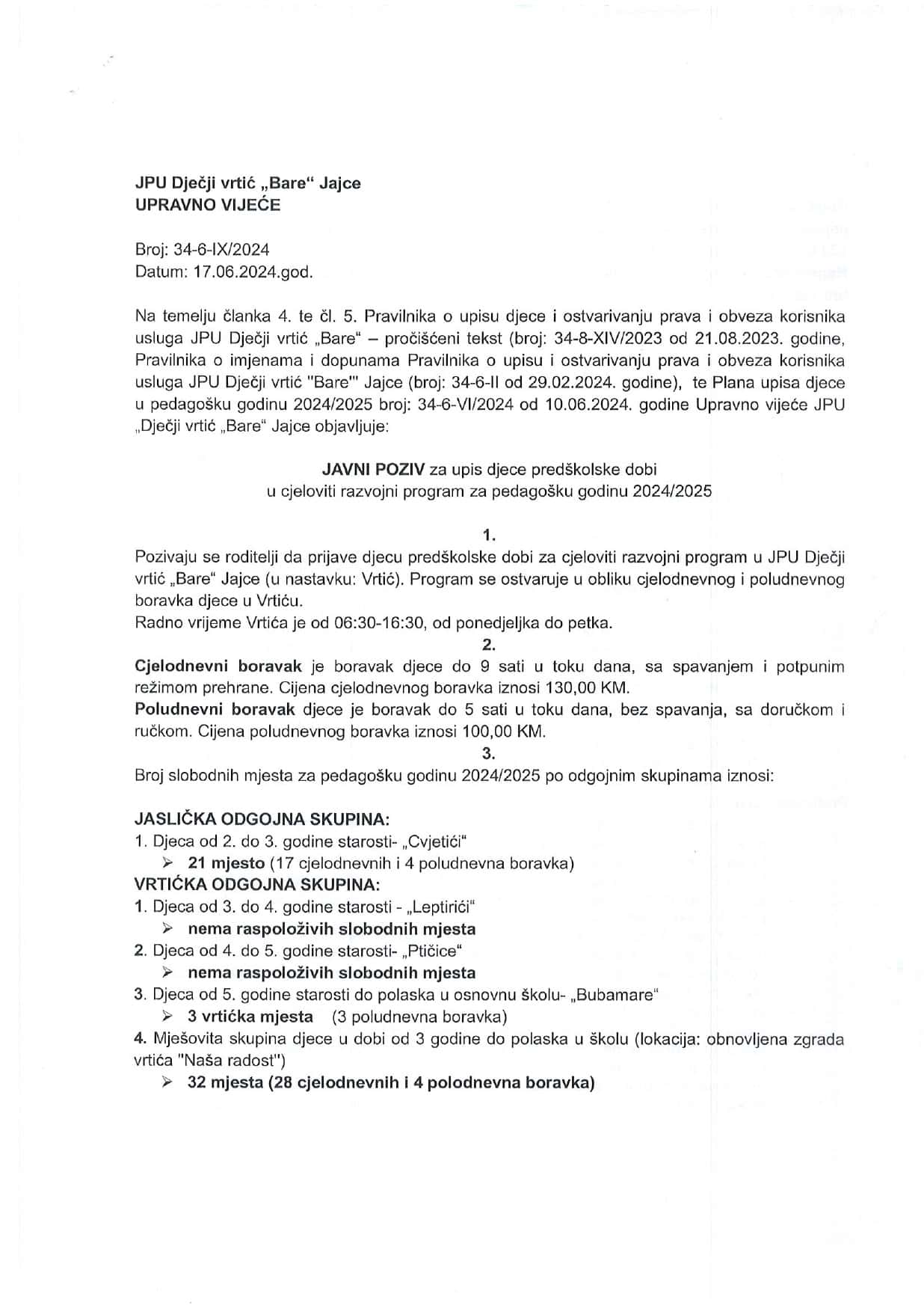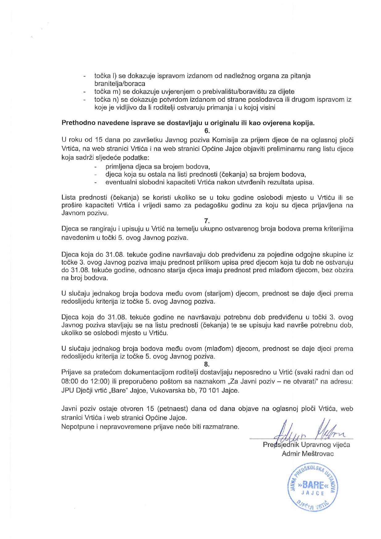 NekategoriziranoDječju vrtić “Bare” objavljuje javni poziv za upis djece u 2024/25 predškolsku godinu Last updated: 18/06/2024 15:48 Share SHARE Tekst poziva i obrazac prijave možete preuzeti ispod: Share This Article Facebook Twitter Copy Link Print Leave a commentOdgovori Otkaži odgovorVaša adresa e-pošte neće biti objavljena. Obavezna polja su označena sa * (obavezno)Komentar * (obavezno)Ime * (obavezno) E-pošta * (obavezno) Web-stranica Spremi moje ime, e-poštu i web-stranicu u ovom internet pregledniku za sljedeći put kada budem komentirao. Nove objave FOTO Kerum je bivšu suprugu ostavio zbog svoje Fani, a ona ga sada odbija posjetiti u zatvoru Bakir reče: “Bolje se 20 ili 30 godina natezati nego 20 dana ratovati.” I što SAD? Teško je znati BiH propustila i posljednju priliku za put ka EU Mariah Carey svake godine zaradi od svog božićnog hita, nećete vjerovati koliko Iznenada preminula glumica (45) koju smo gledali u popularnim serijama Glumac iz hit-serije koji je imao 172 kg, danas je neprepoznatljiv: ‘Hranom sam liječio svoje emocije i strahove’ Tko je sin slavnog redatelja koji je optužen za dvostruko ubojstvo? Godinama se borio s ovisnošću, svoju priču pretočio u film Sin slavnog redatelja Reinera uhićen zbog ubojstva roditelja, otkriveni i neki novi detalji tragedije