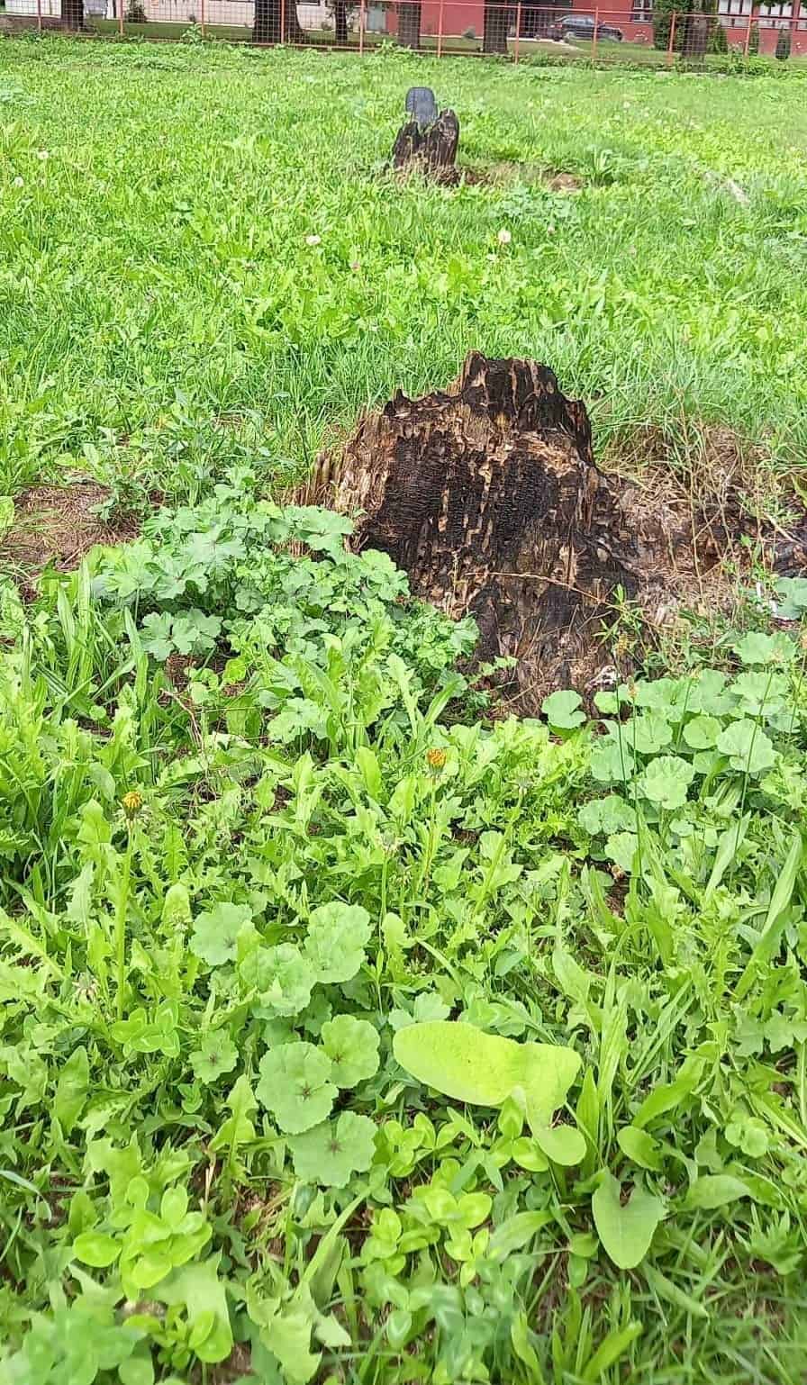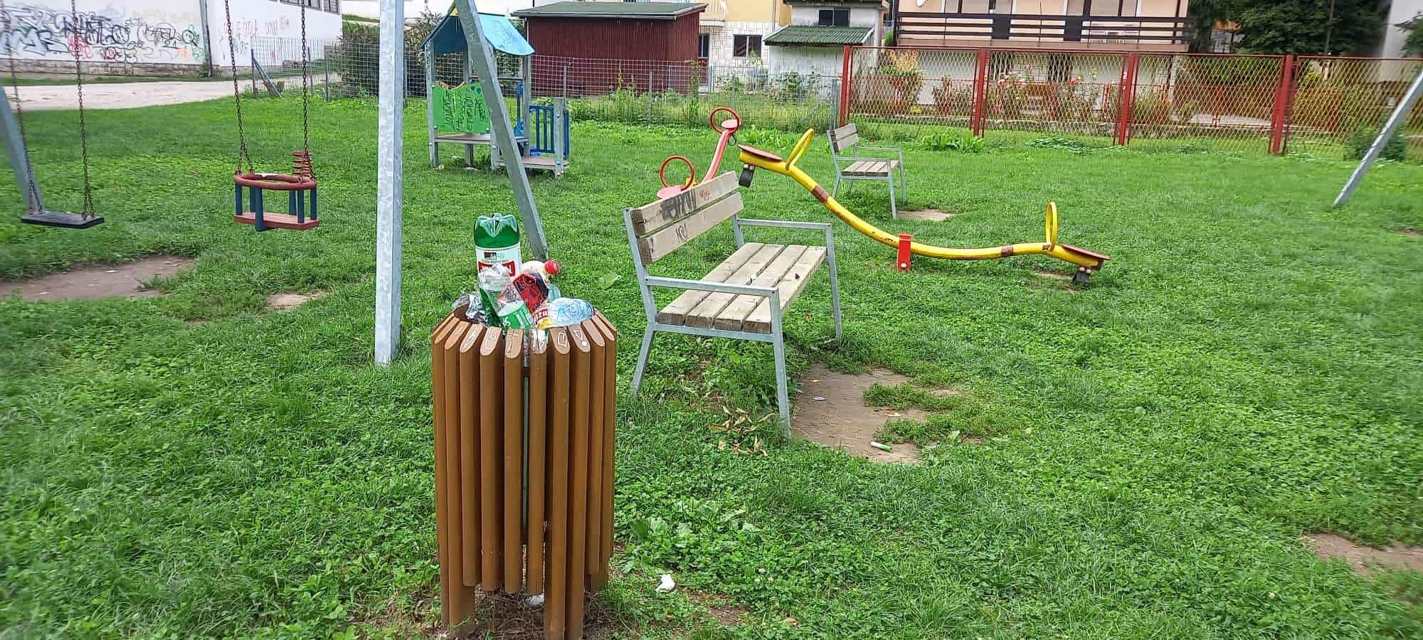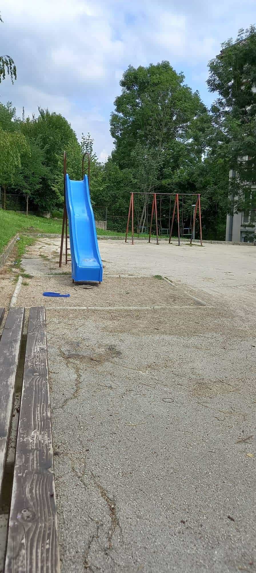Naša sugrađanka poslala nam je fotografije dječjeg igrališta u blizini srednje škole Nikola Šop. Zapušteno i zaraslo u travu, polomljene njihalice i uokolo razbacani dijelovi. Panjevi davno odrezanih stabala koji opasno strše iz trave.