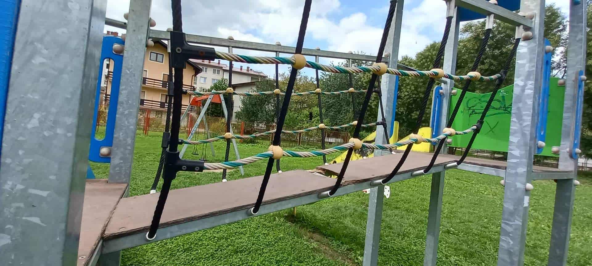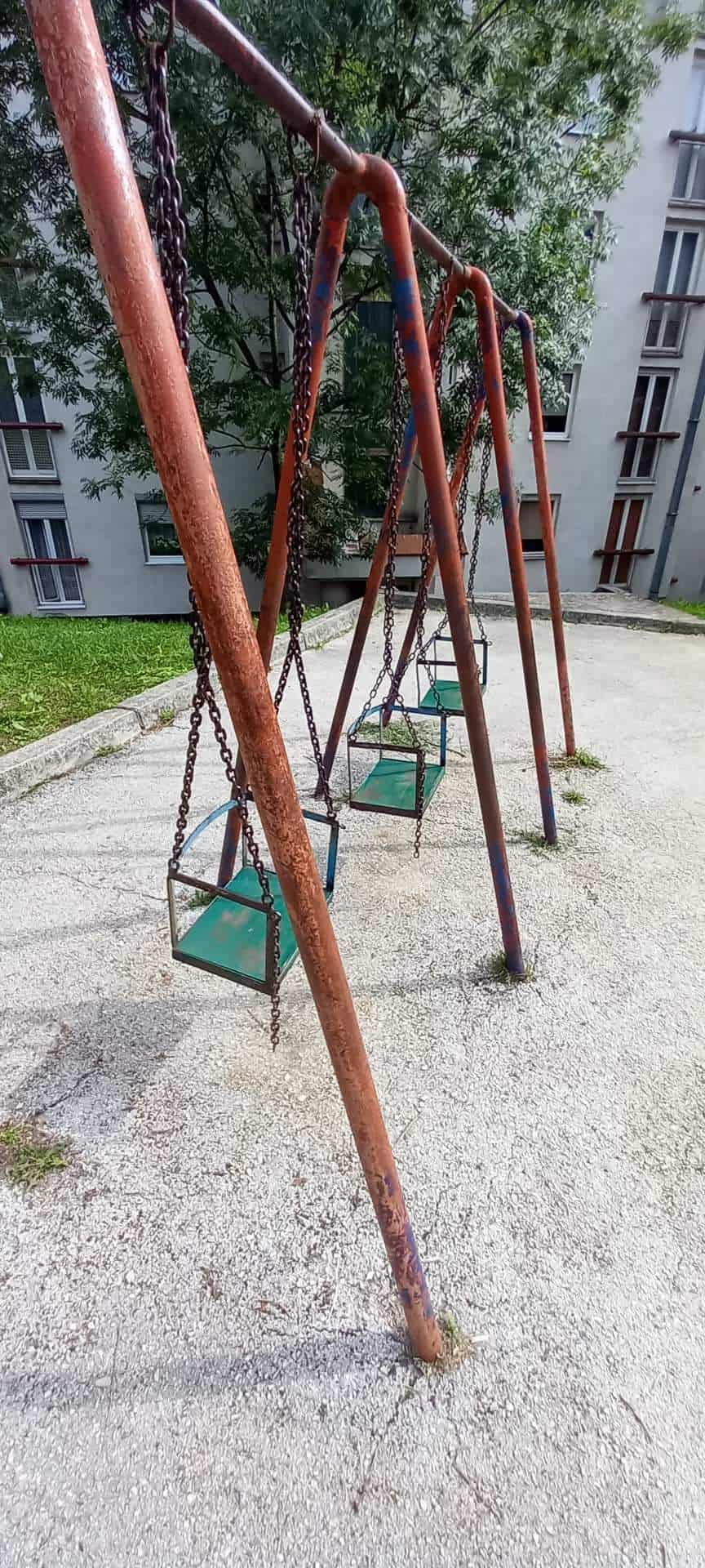 Tek malo dalje je igralište u naselju Hrast. Pohrđale ljuljačke izgledaju kao i scena ratnih filmova. Igralište je asfaltirano pa zbog toga barem nije zaraslo u travu, ali sve u svemu odaje otužan dojam.