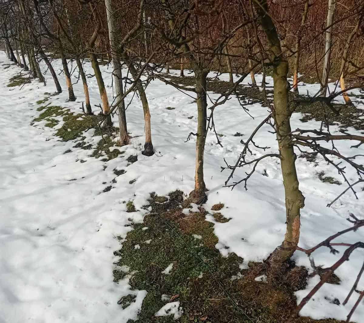 U mjestu Gornja Lupnica ovih dana zečevi su napravili veliku štetu stablima jabuke.