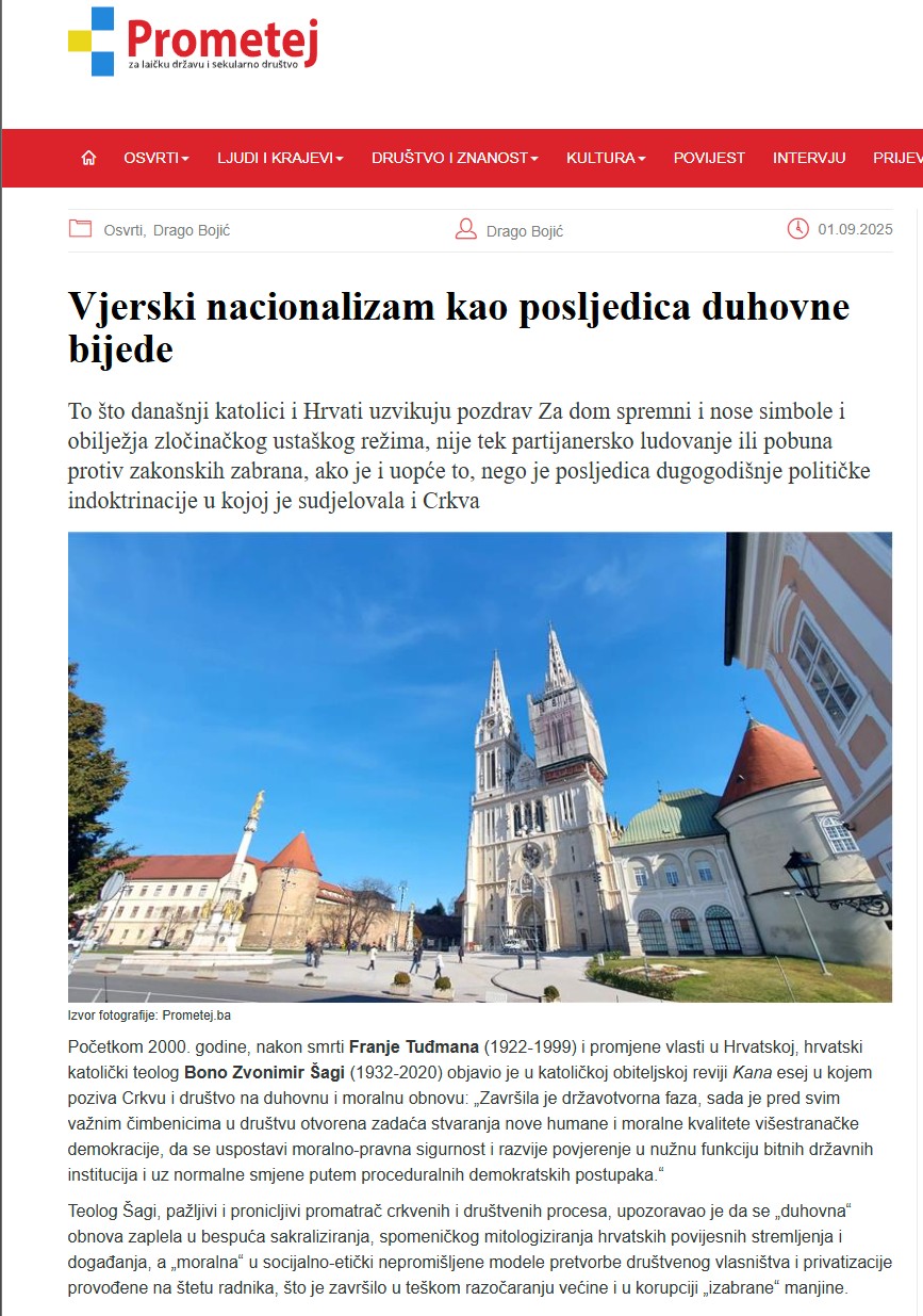Poveznica na tekst fra Drage Bojića objavljenog na portalu Prometej.ba
