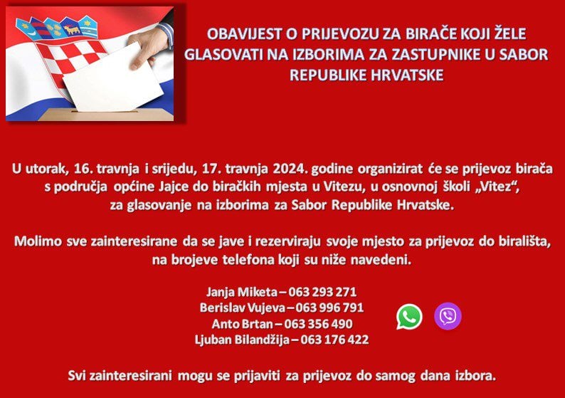 Ukoliko ste sa područja Jajca i zainteresirani ste za glasovanje na predstojećim parlamentarnim izborima u Republici Hrvatskoj ovdje su najvažniji podaci koje trebate znati: