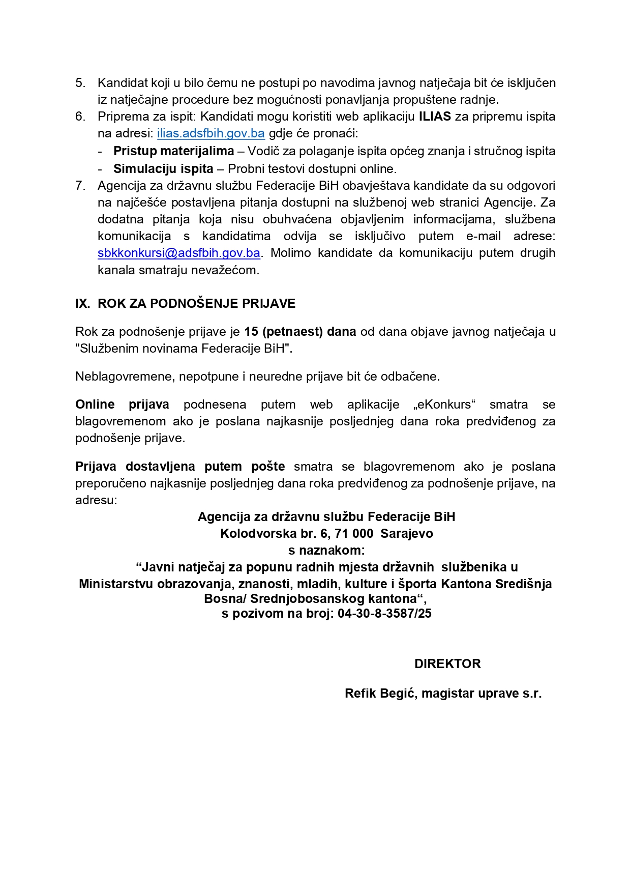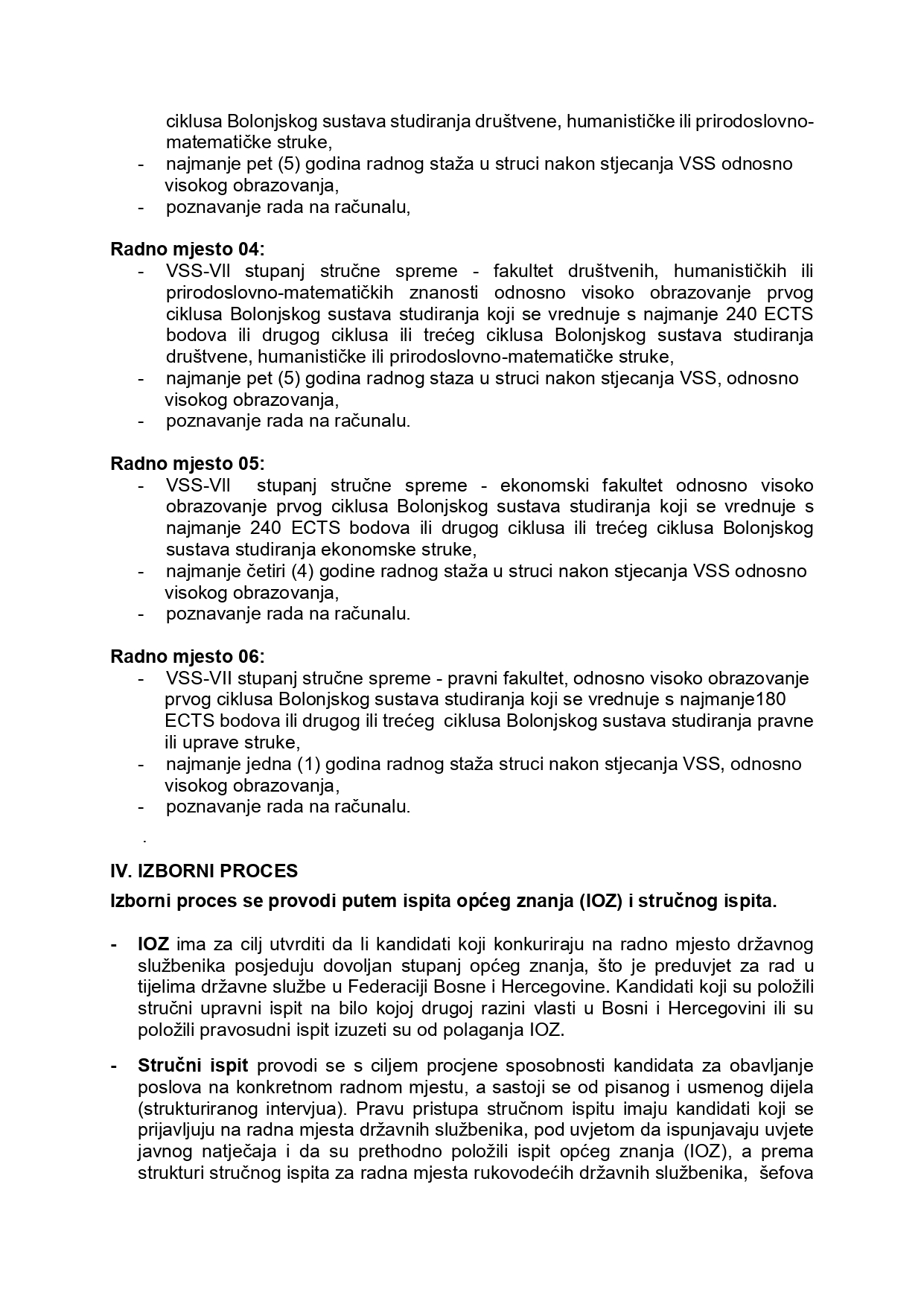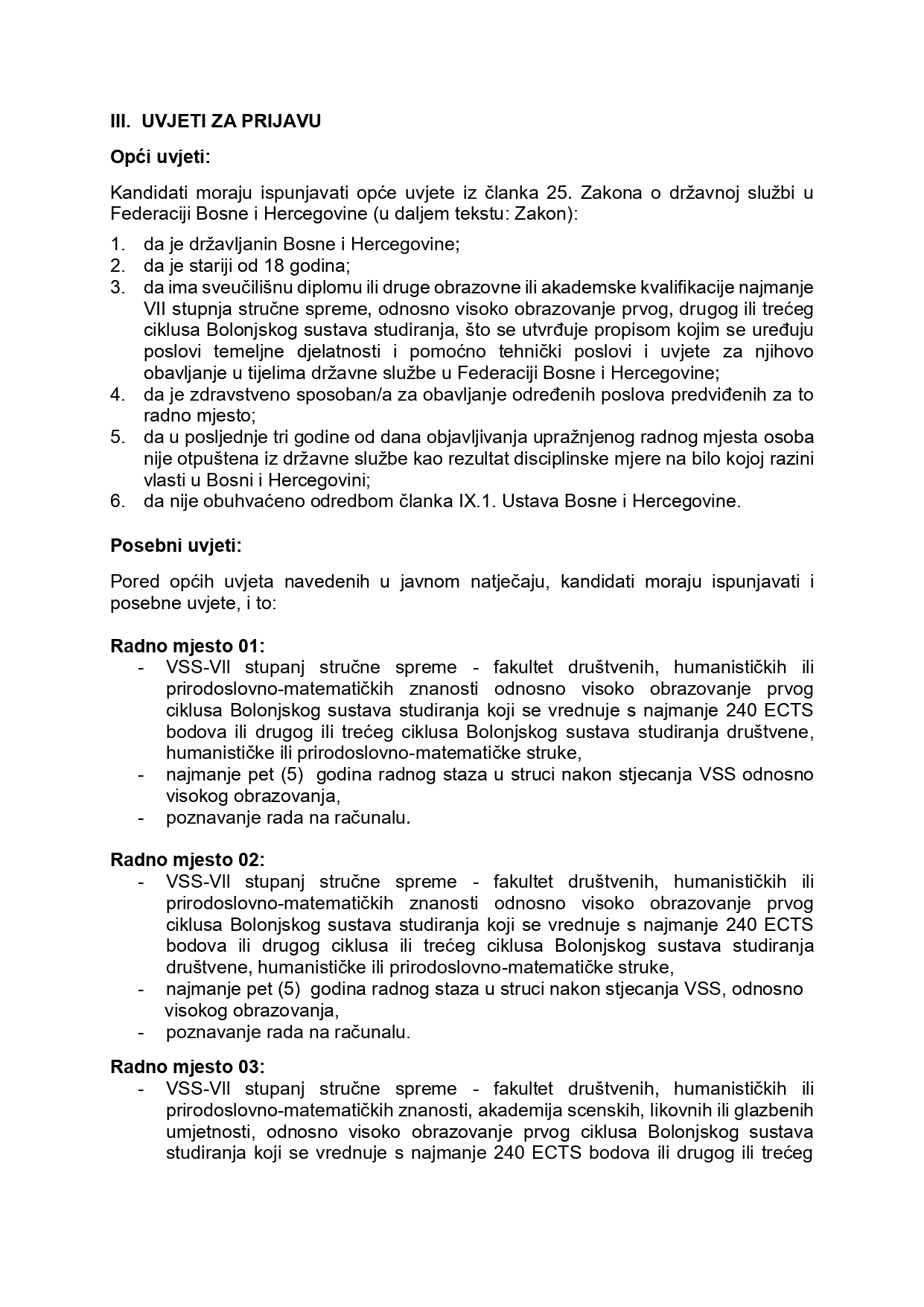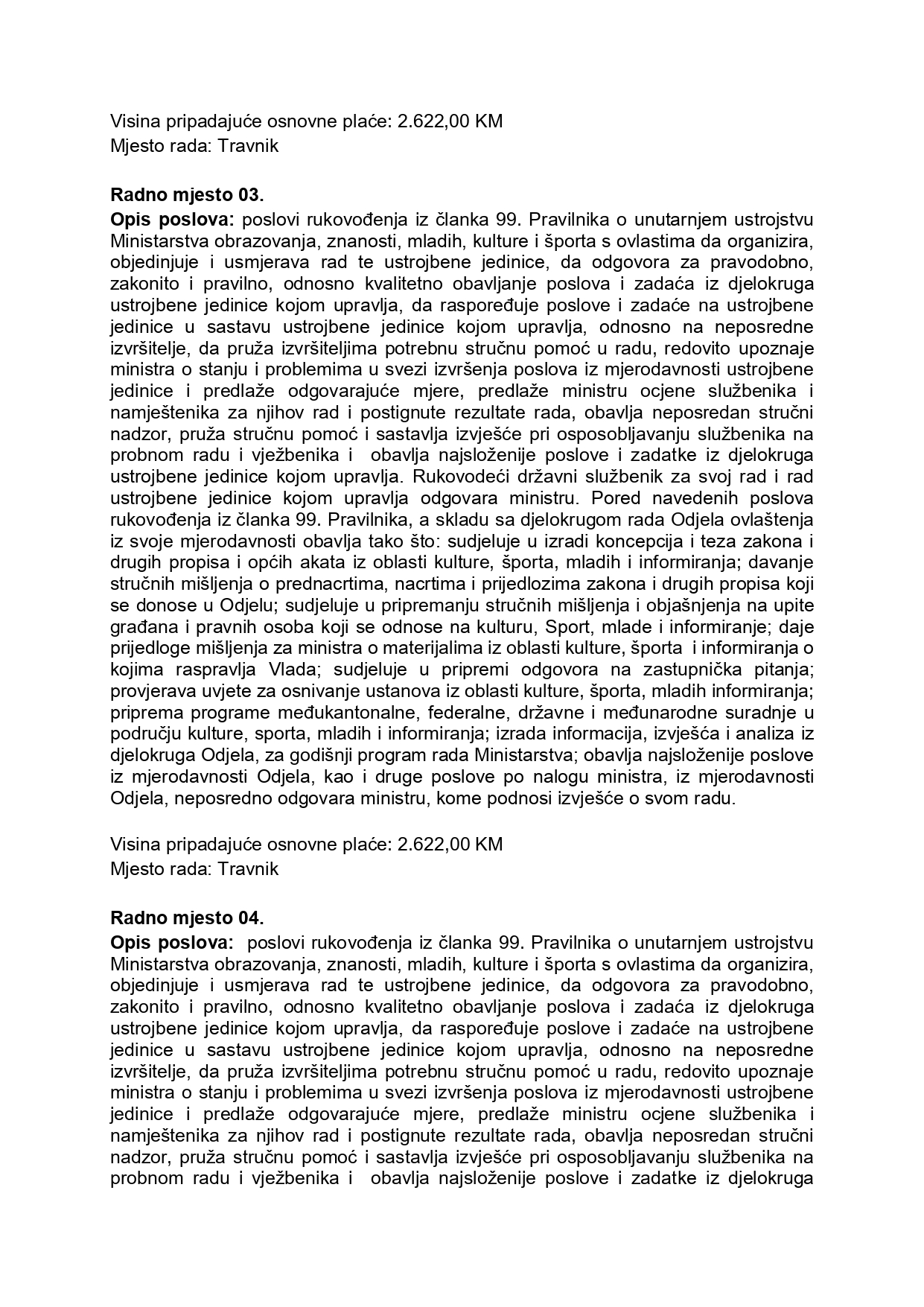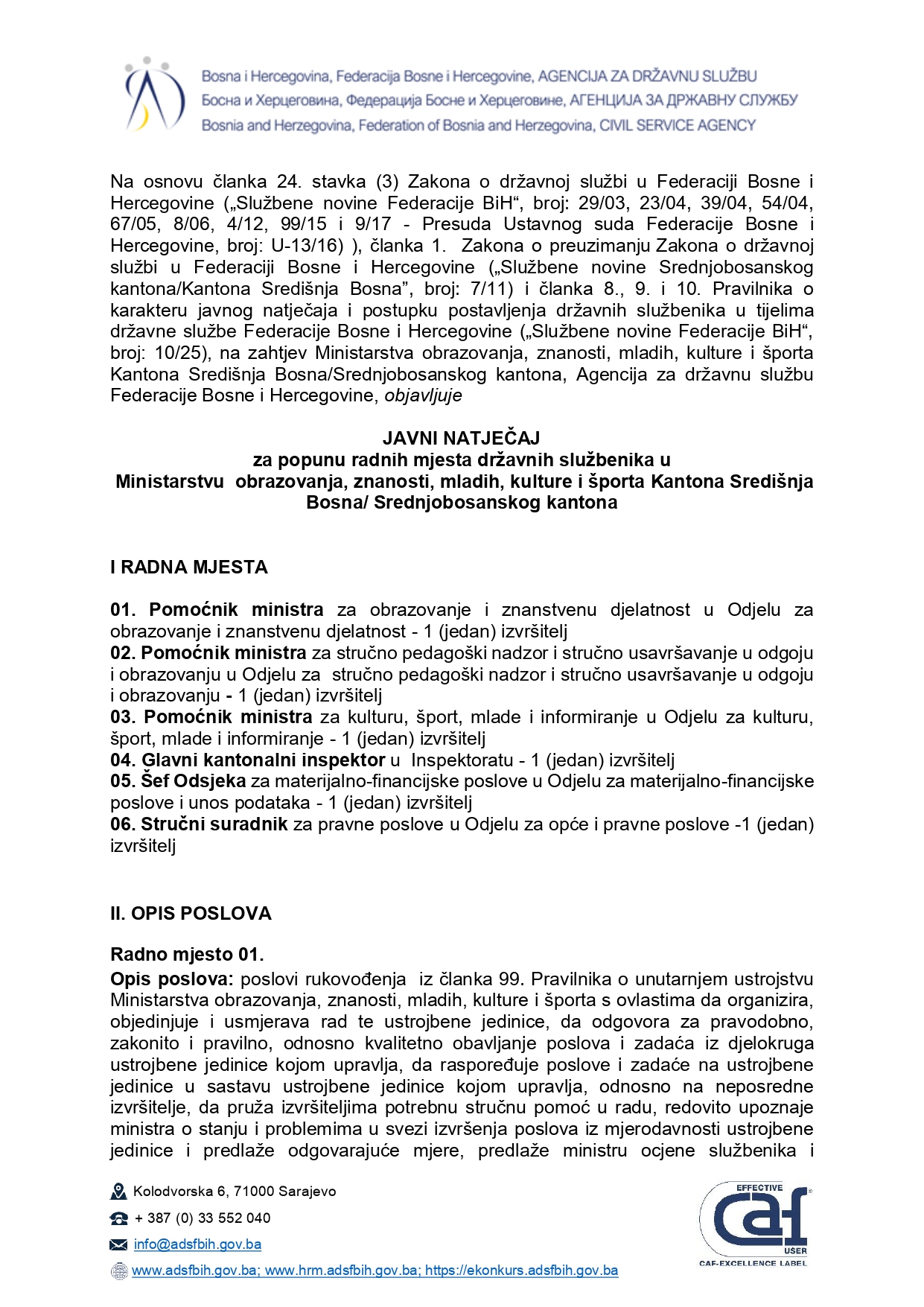 Objavljen je Javni natječaj za popunu radnih mjesta državnih službenika u Ministarstvu obrazovanja, znanosti, mladih, kulture i športa Kantona Središnja Bosna.