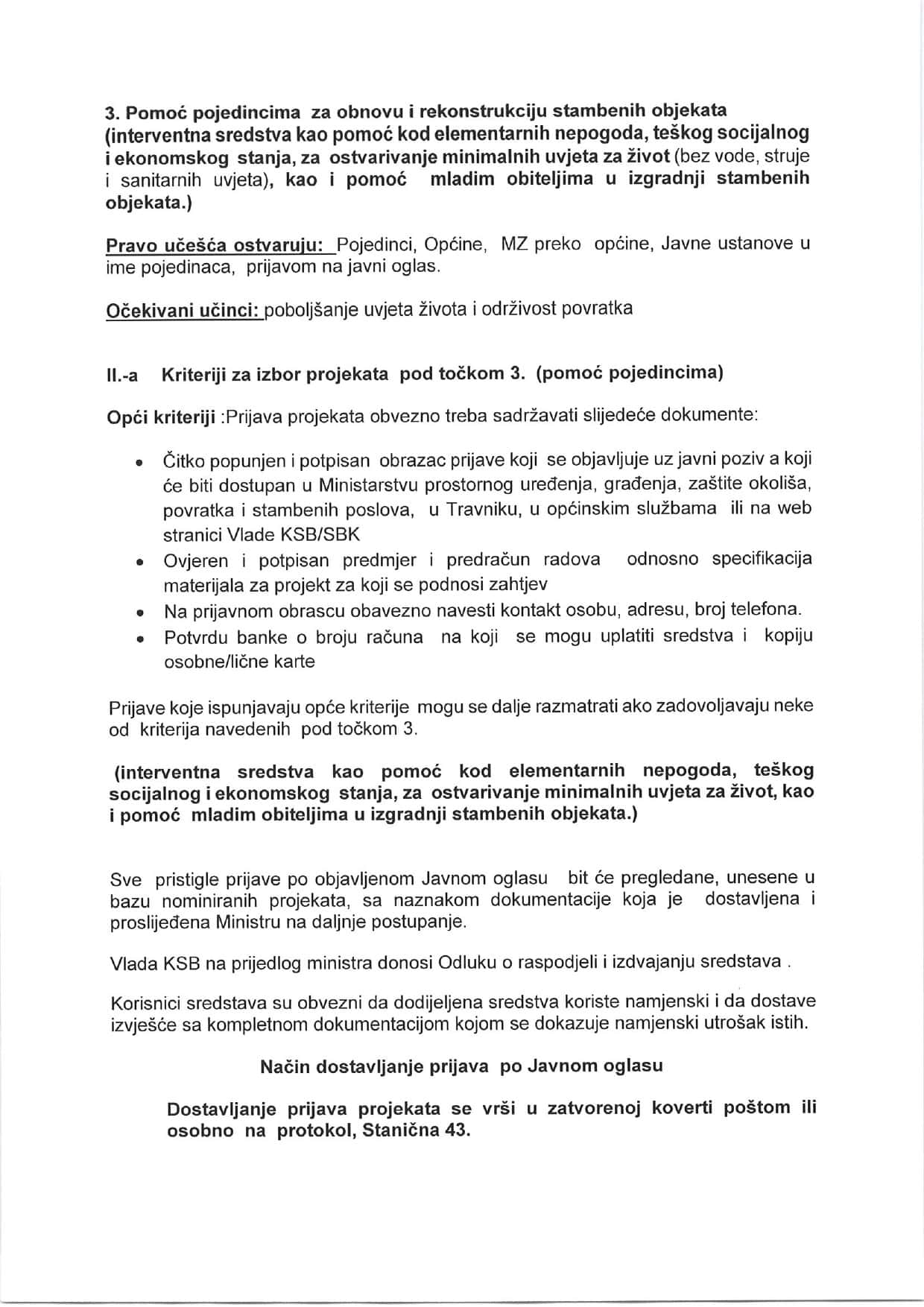 za podnošenje prijava za projekte poticaj povratku prognanih, obnovi i razvitku u 2023. godini