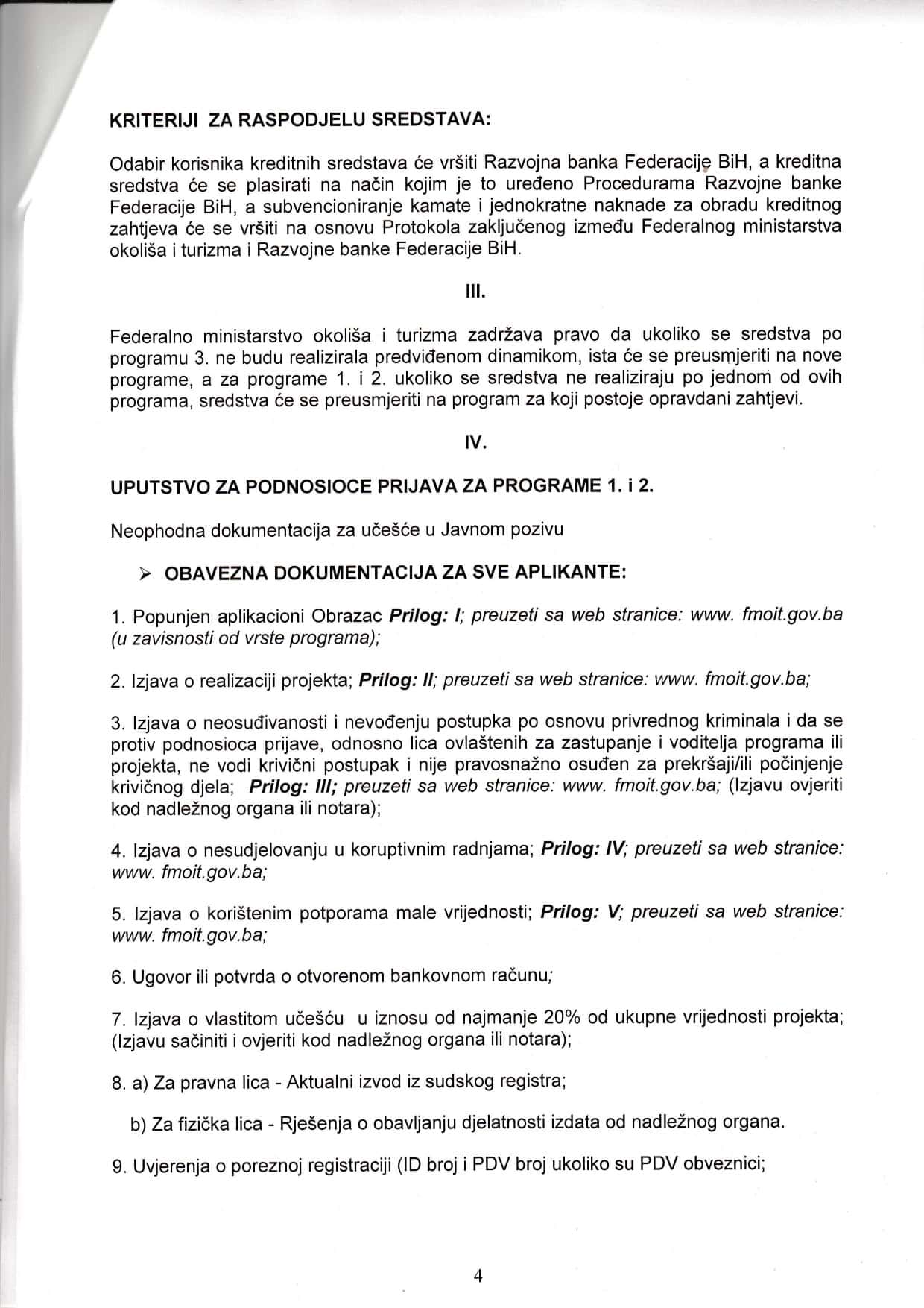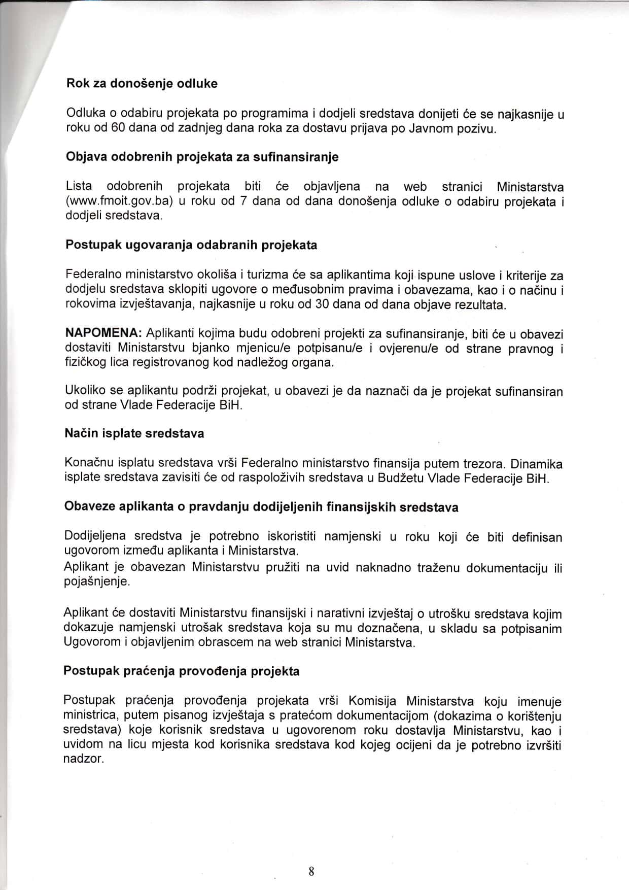JAVNI POZIV i prateću dokumentaciji možete preuzeti na linku OVDJE ili putem web stranice Federalnog ministarstva okoliša i turizma.