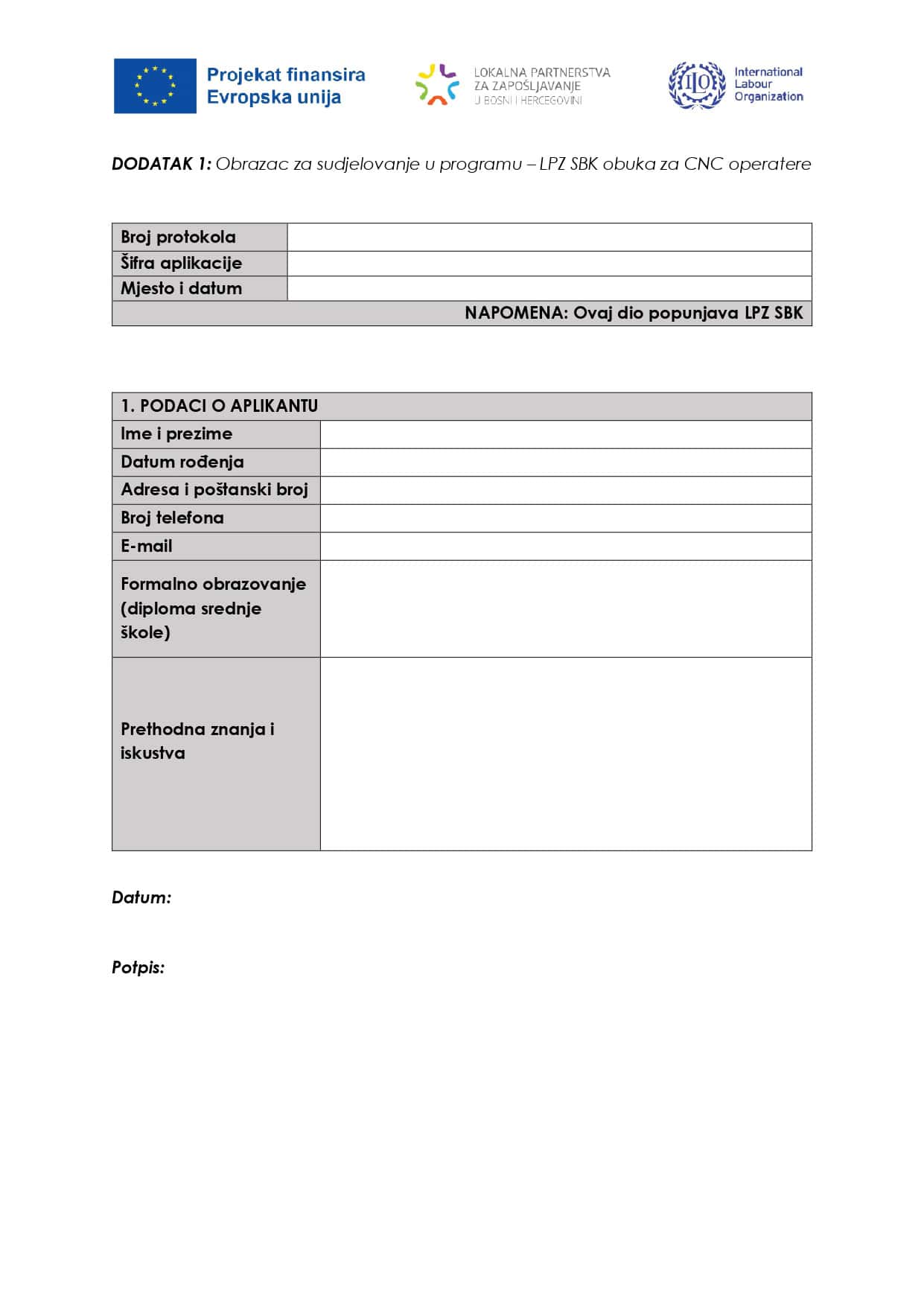 Zainteresirani za učešće u programu edukacije za CNC operatere Prijavni obrazac i prateću dokumentaciju mogu preuzeti na linku OVDJE