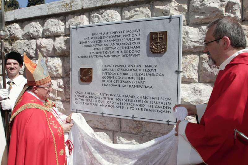 Antun, Pavle i Jakov Branković iz Sarajeva zaslužni su što je mjesto kojeg se kršćani sjećaju na Veliki četvrtak i s kojeg je počela Kristova muka vraćeno kršćanima. Riječ je o Getsemanskom vrtu koji su spomenuta trojica Hrvata iz Bosne i Hercegovine otkupila od tadašnjih turskih vlasnika, muslimana. Maslinska gora planina je istočno od Jeruzalema obrasla maslinama.