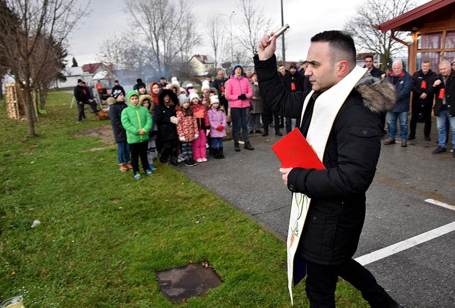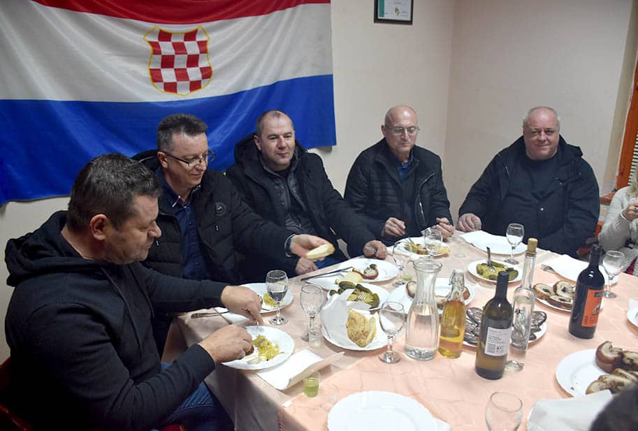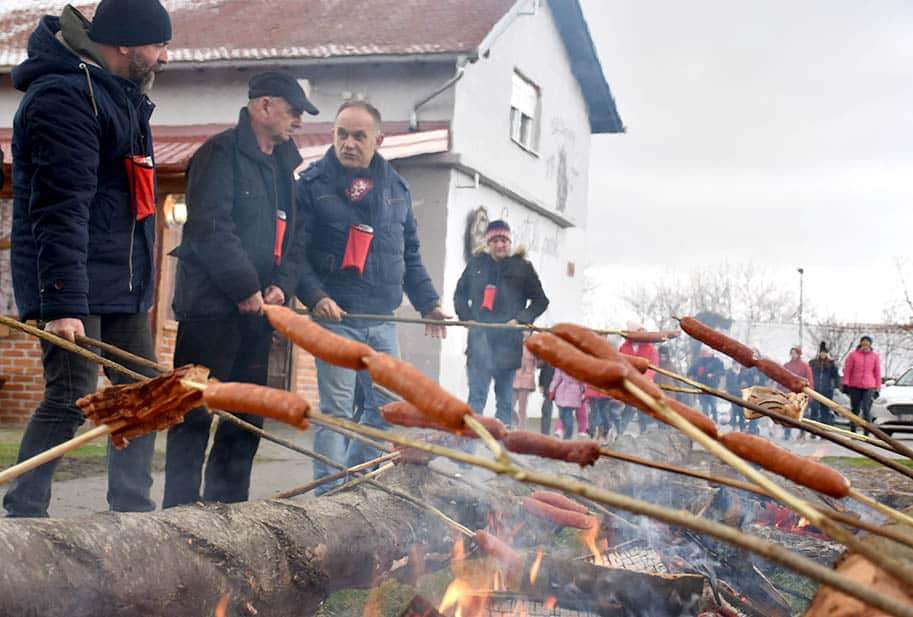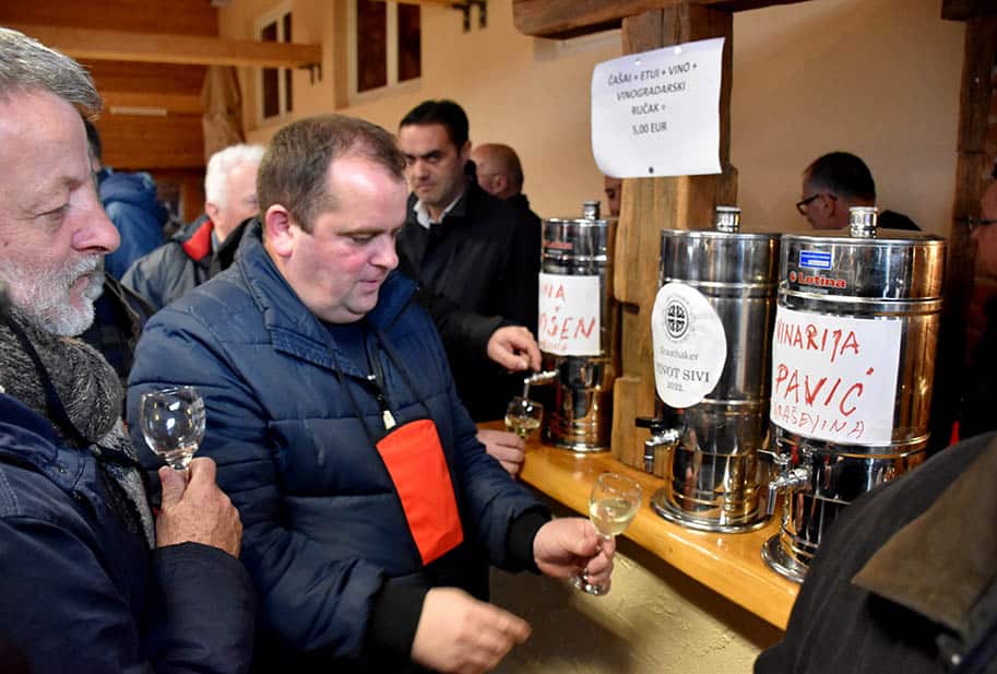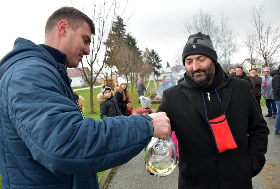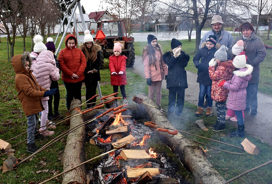 Na otvorenoj vatri pekla se slanina i kobasica na vinogradarskpm ražnju, a organizatori su sve častili grahom sa kobasicom i vinom koje je doniralo nekoliko vinara iz kutjevačkog vinogorja.