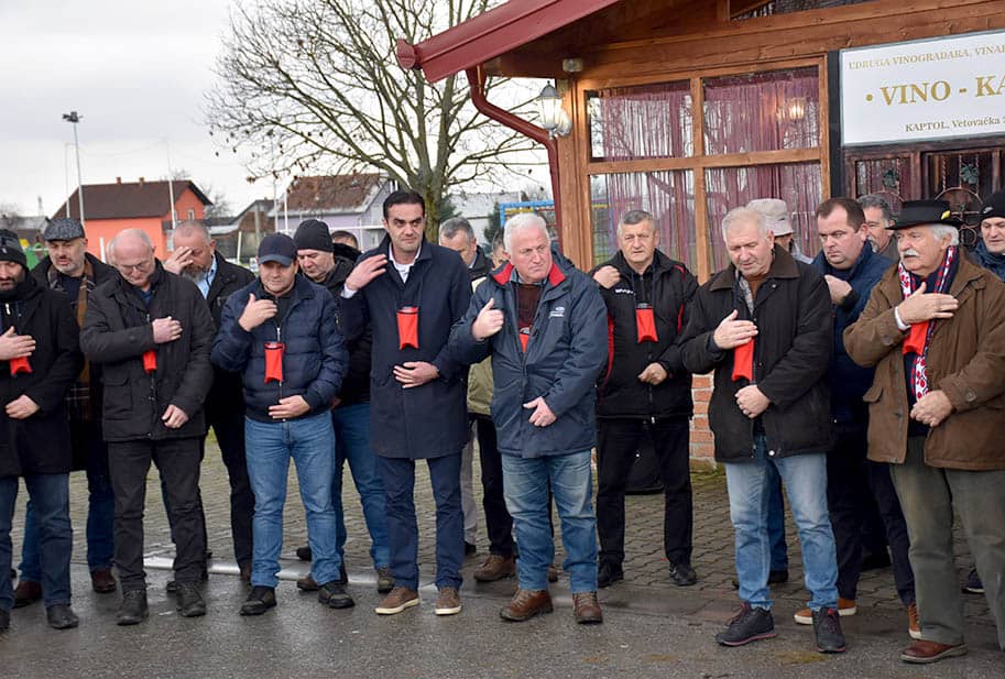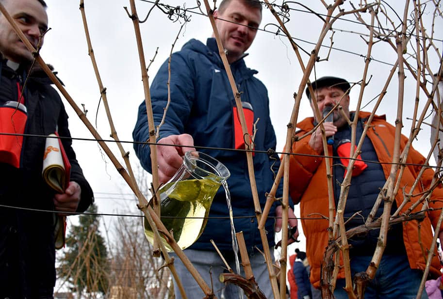 Obred blagoslova i zaziv zaštite nebeskog zaštitinika sv. Vinka vodio je Mario Rašić, župnik Župe Kaptol, uz pratnju Dječjeg crkvenog zbora. Uz astenciju župnika Rašića i Frdinanda Novaka, predsjednika kaptolačkih vinara, čokot je orezao Hrvoje Pavlović, član i vinski kum Udruge.