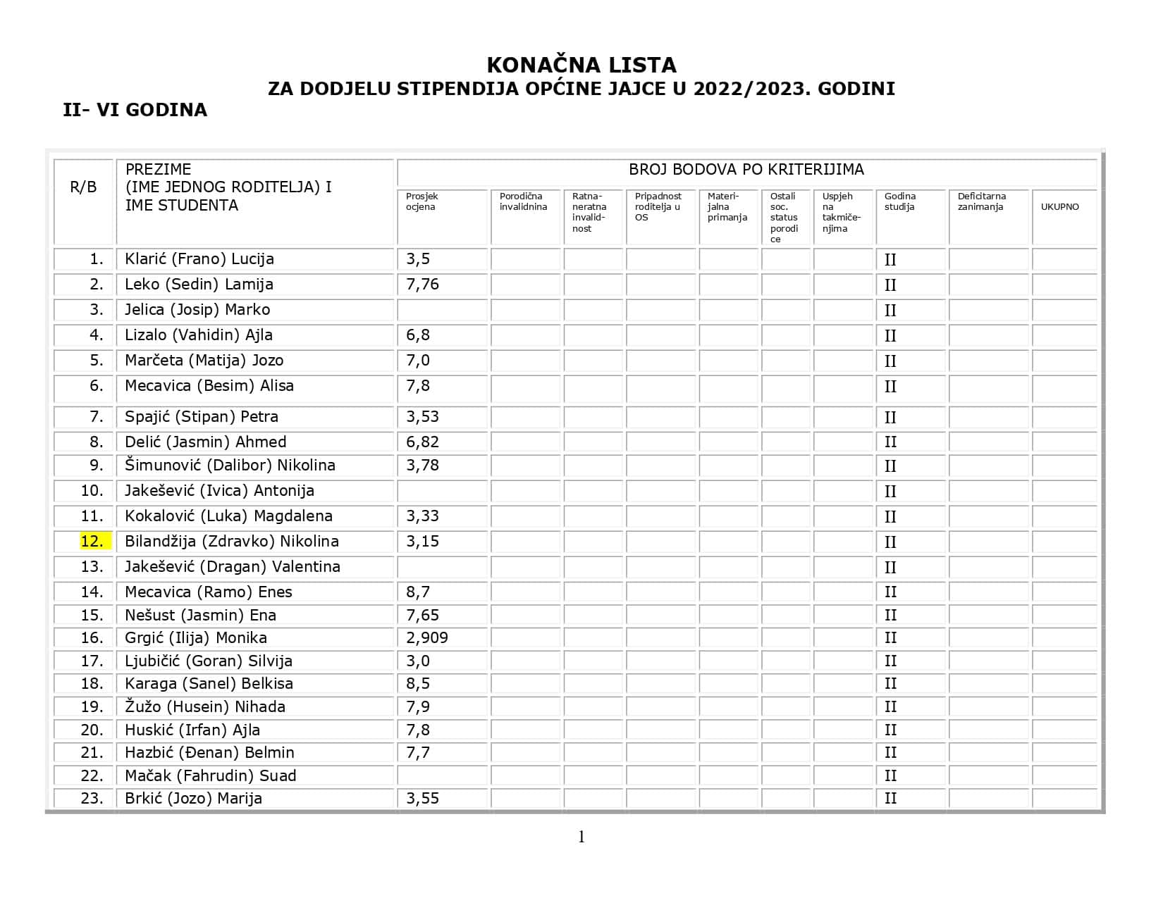 KONAČNA LISTA STUDENATA 2-6. GODINA STUDIJA