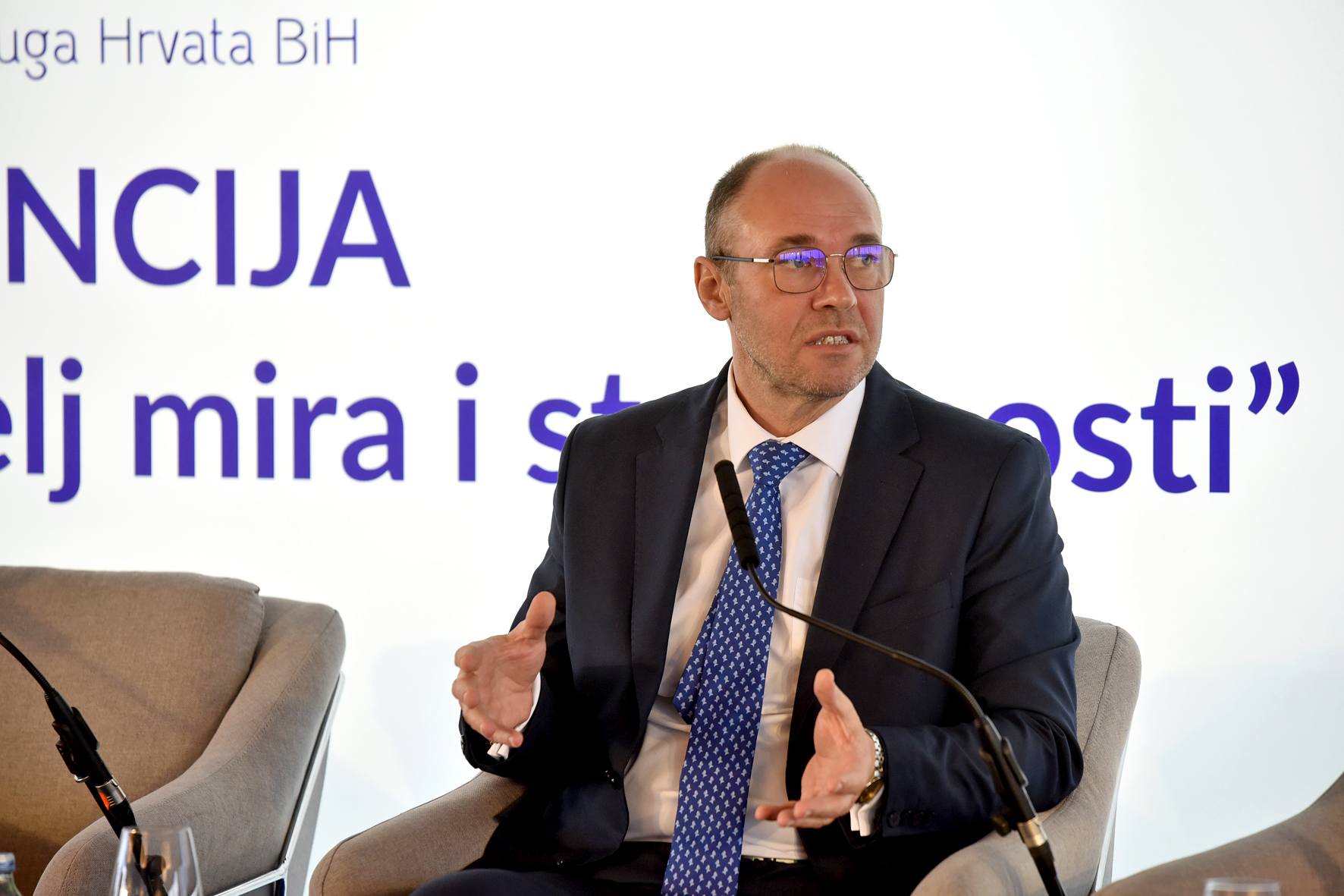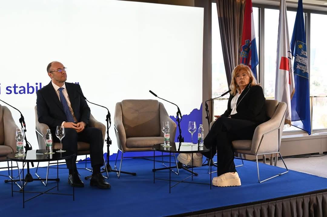 Nakon uvodnih govora, uslijedio je razgovor ‘jedan na jedan’, u kojem je Davor Ivo Stier, zastupnik u Europskom parlamentu, razgovarao s moderatoricom Ivanom Petrović o geopolitičkim izazovima u regiji i ulozi Europske unije u stabilizaciji BiH.