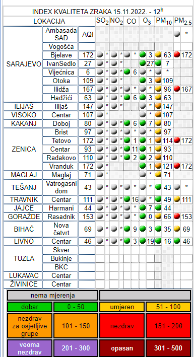 Ovime su najugroženiji stanovnici Sarajeva, Zenice, Tuzle, Travnika, Goražda i drugih mjesta. Vrijednosti zagađenja zraka izmjerena u Jajcu danas pokazuju da je kvaliteta zraka u našem gradu dobre kvalitete