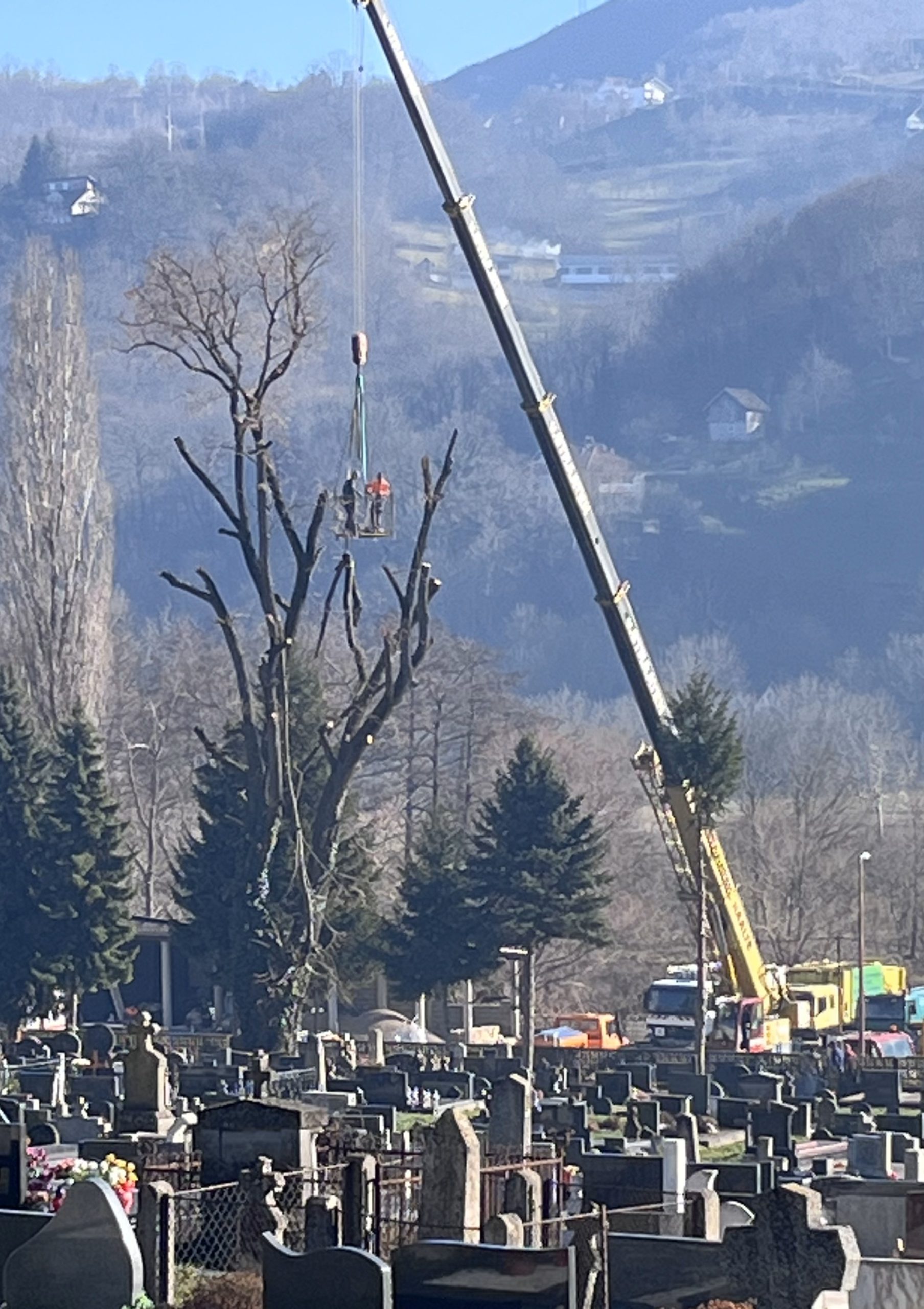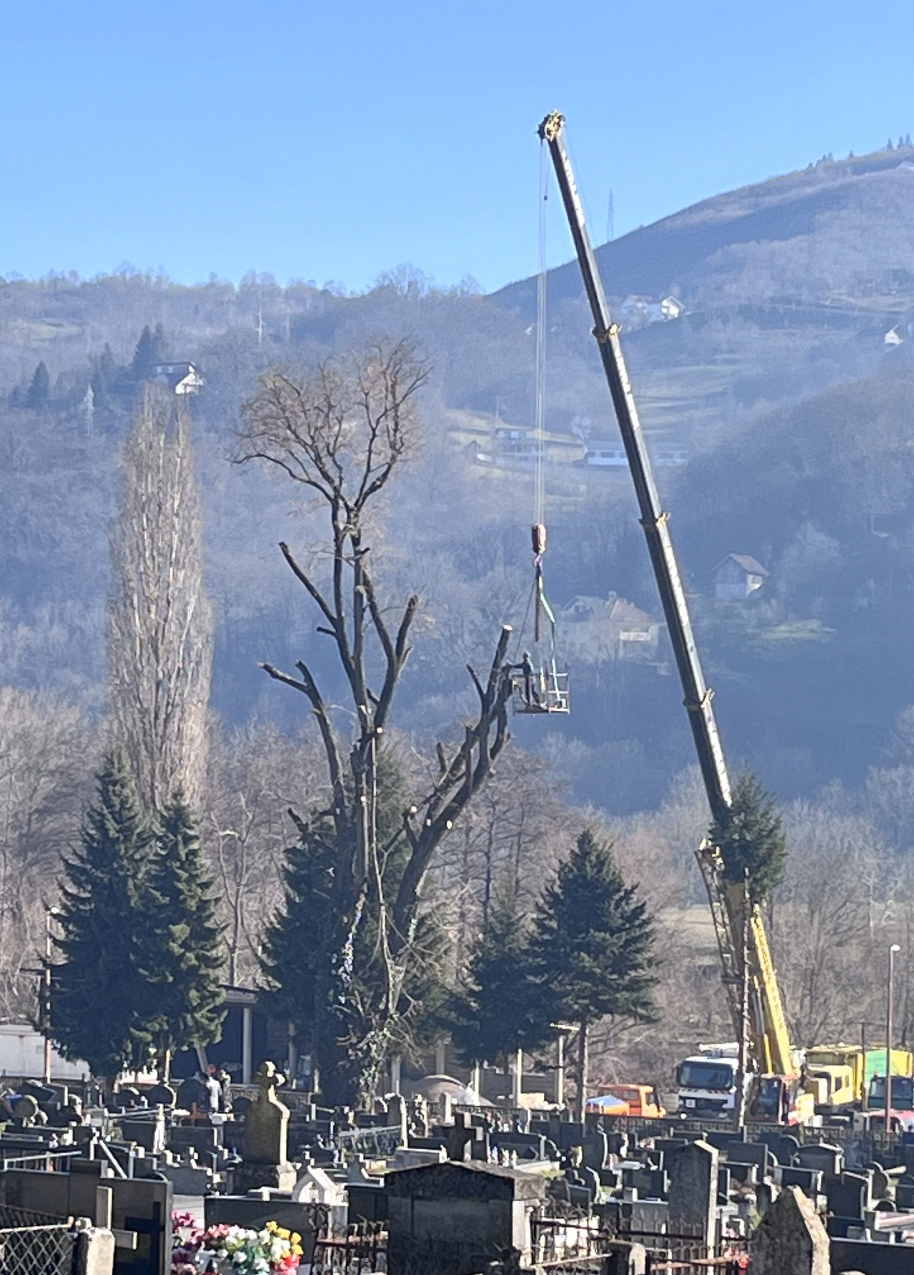Komplicirani proces uklanjanja grana vrši se uz pomoć velike dizalice koju je za ovu namjenu omogućilo poduzeće “Komotin”.