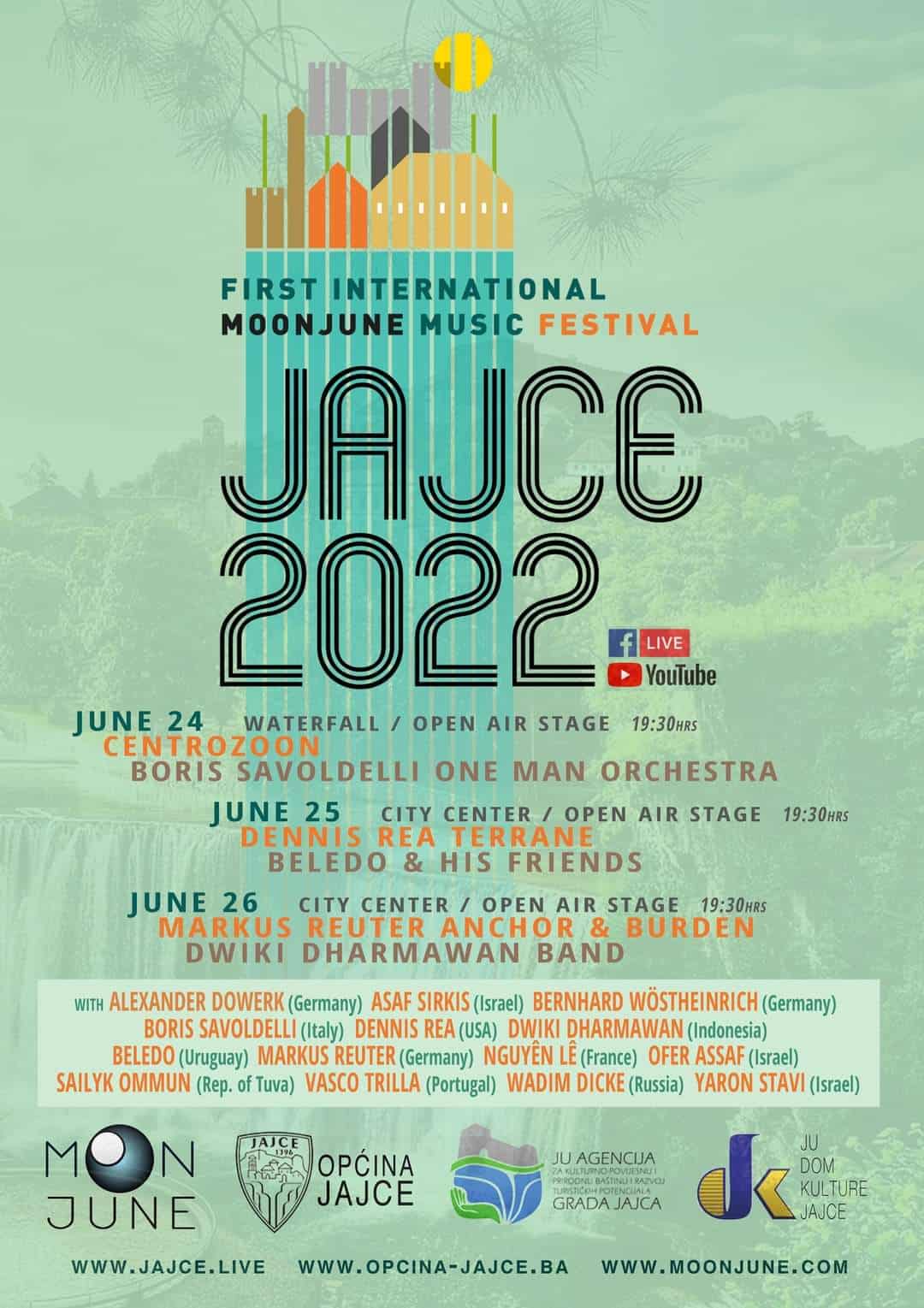Ove godine Alexander Paul Dowerk, Asaf Sirkis, Bernhard Wöstheinrich, Boris Savoldelli, Dennis Rea, Dwiki Dharmawan, Beledo, Markus Reuter, Nguyen Le, Ofer Assaf, Sailyk Ommun, Vasco Trilla, Wadim Dicke i Yaron Stavi nastupit će u prekrasnom gradu Jajcu bogatom s gotovo dvije tisuće godina povijesti. A moj poseban gost bit će jedan od mojih najdražih ljudi, Uncle Roy Sir Lord Babbington. Zbog problema u kalendaru nastupa, neki od mojih najdražih prijatelja moonjunista glazbenika ne mogu stići, kao što su Gary Husband, Vasil Hadžimanov, Vasko Atanasovski i John Etheridge.