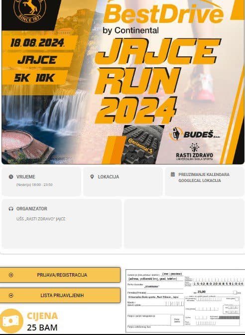 Univerzalna škola sporta “Rasti zdravo” koja organizira utrku “JAJCE RUN 2024” dostavila nam je detalje registracije za sudionike utrke.