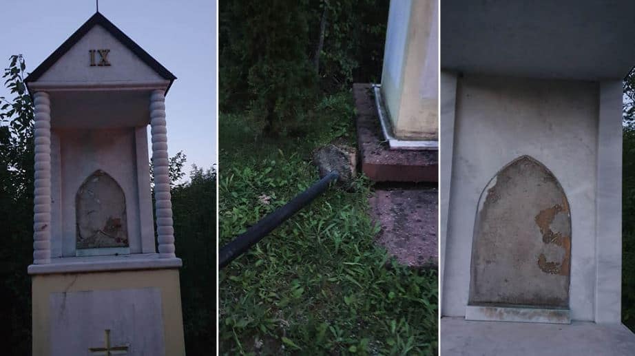 Prema informacijama dobivenim od župnika fra Franje Martinovića te iz izvora u policiji, koja je napravila uviđaj, nepoznati su počinitelji uništili ili otuđili šest reljefnih postaja križnoga puta te uništili prateće nosače i stupove rasvjetnih tijela.