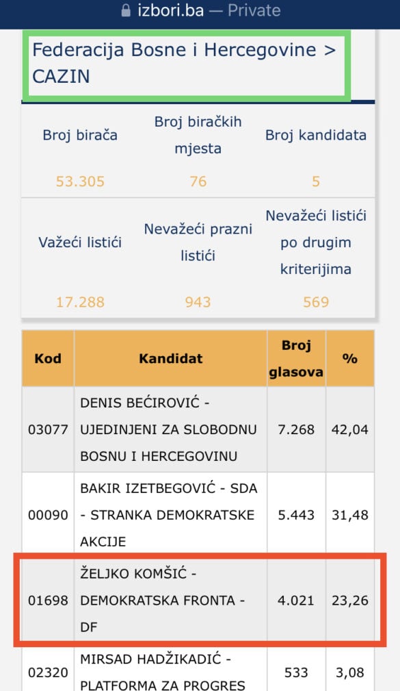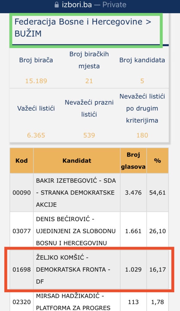 Komšić u tom gradu puše za vrat Bećiroviću, a osvojio je dvostruko više glasova od Izetbegovića