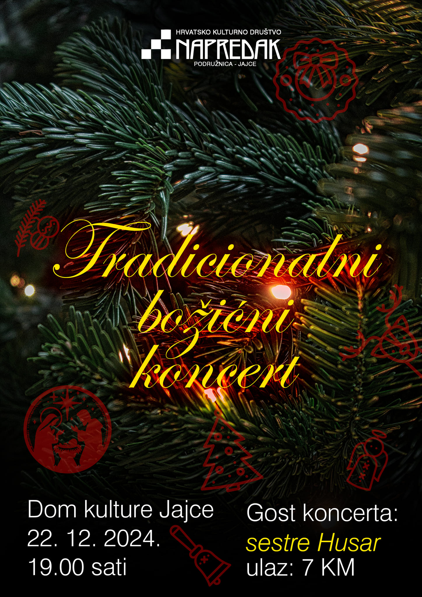 Hrvatsko kulturno društvo Napredak podružnica Jajce poziva vas na Tradicionalni božićni koncert koji će se održati u nedjelju 22. prosinca u Domu kulture u Jajcu s početkom u 19.00 sati