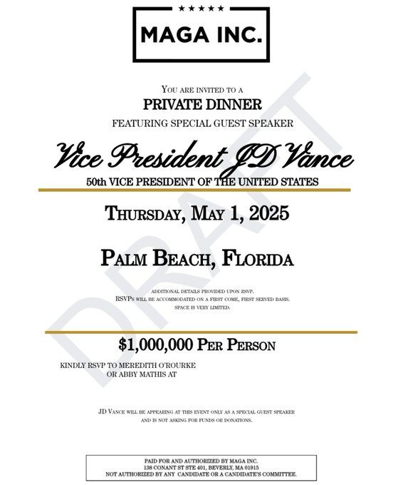PAC koji je organizovao ovu večeru, koju je Vučić predstavljao kao sastanak s Trumpom, je MAGA Inc., što je glavna organizacija za skupljanje donacija koju koristi Trump. Ovaj PAC je kao cijenu za mjesto na večeri odredio milion dolara, a za sastanak s Trumpom, jedan na jedan, cijena je bila pet miliona dolara.