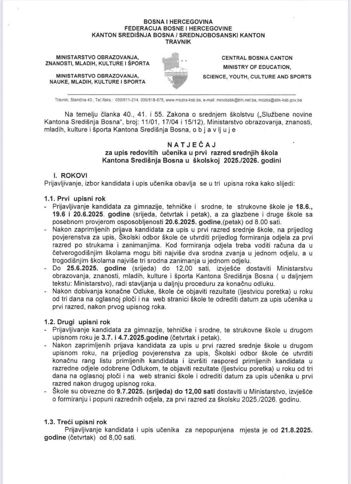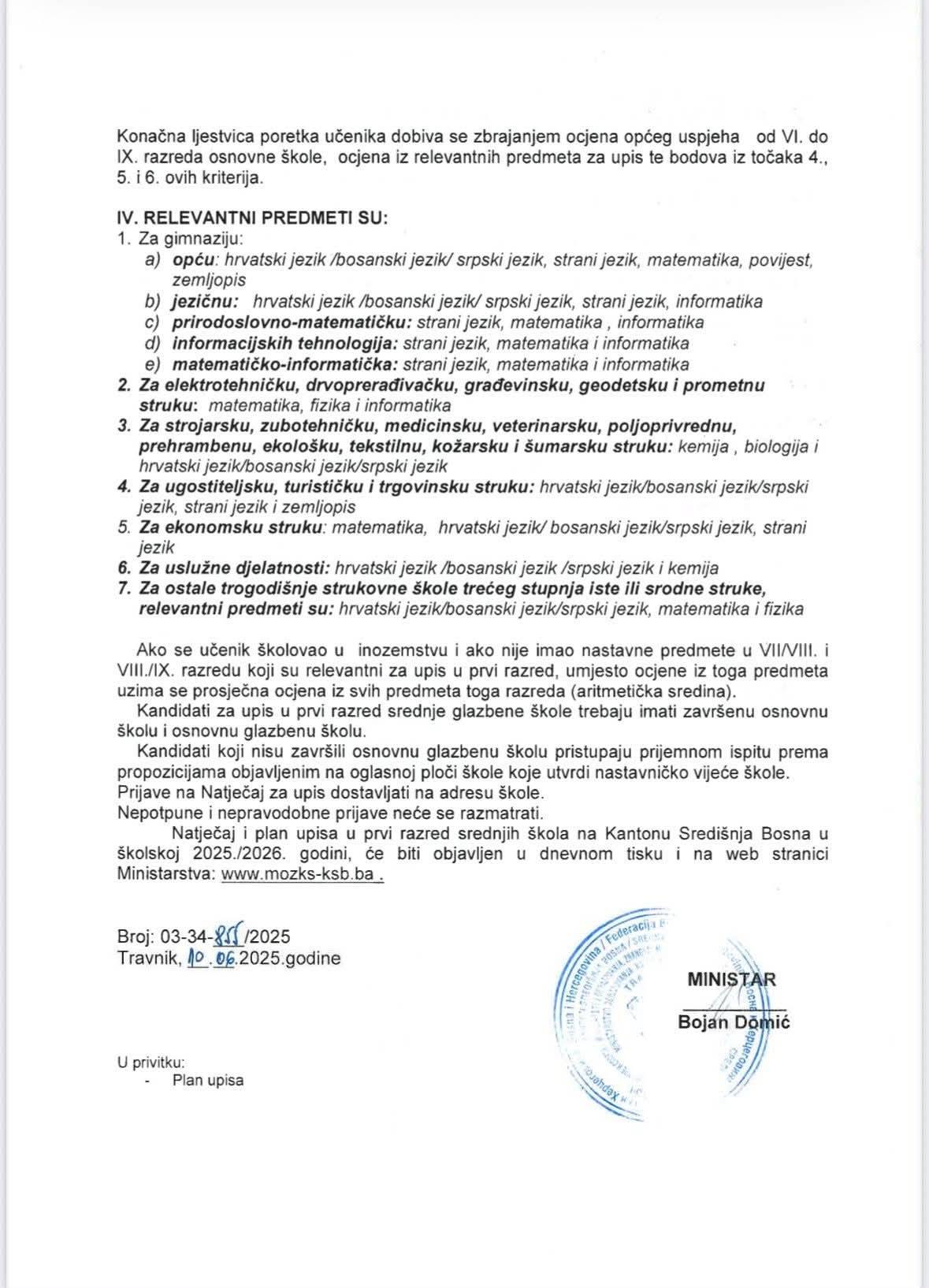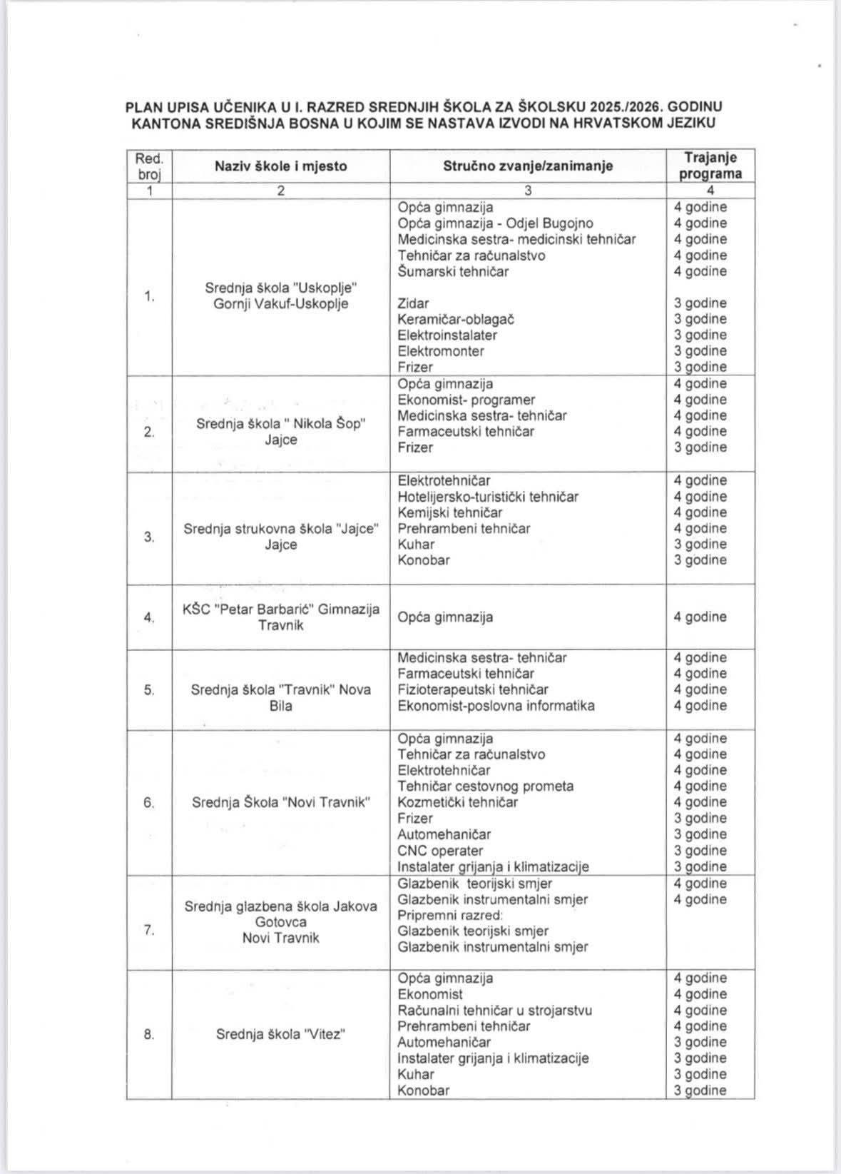 Objavljen je popis svih srednjoškolskih smjerova koje jajački srednjoškolci mogu upisati u Jajcu u školskoj godini 2025/2026.