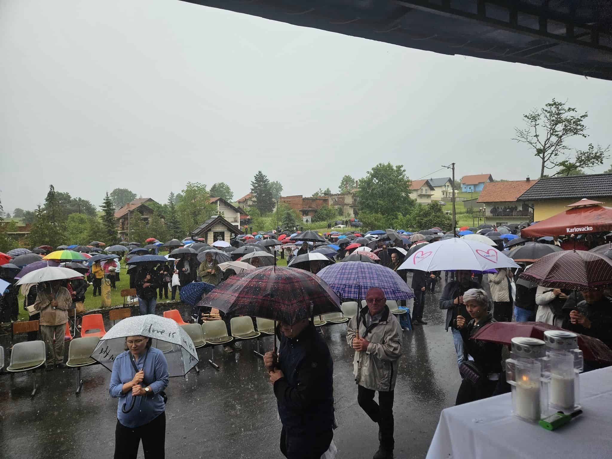 Župnik fra Juro Tokalić za vrijeme svete Pričesti pročitao je župne obavjesti i izrekao riječi zahvale svima koji su doprinijeli organizaciji, te pozvao na nastavak druženja uz zajednički ručak. Opće narodno veselje je izostalo zbog spomenutog nevremena, no okupljeni se nisu predali, već se zadržali kod postavljenih šatora, gdje su vrijedni ugostitelji pripremili dovoljno jela i pića za sve nazočne.