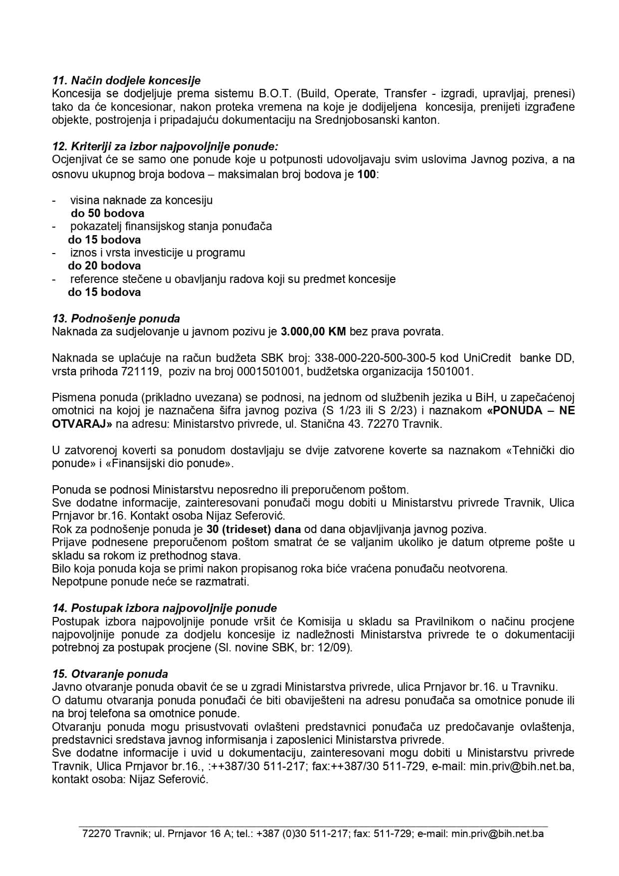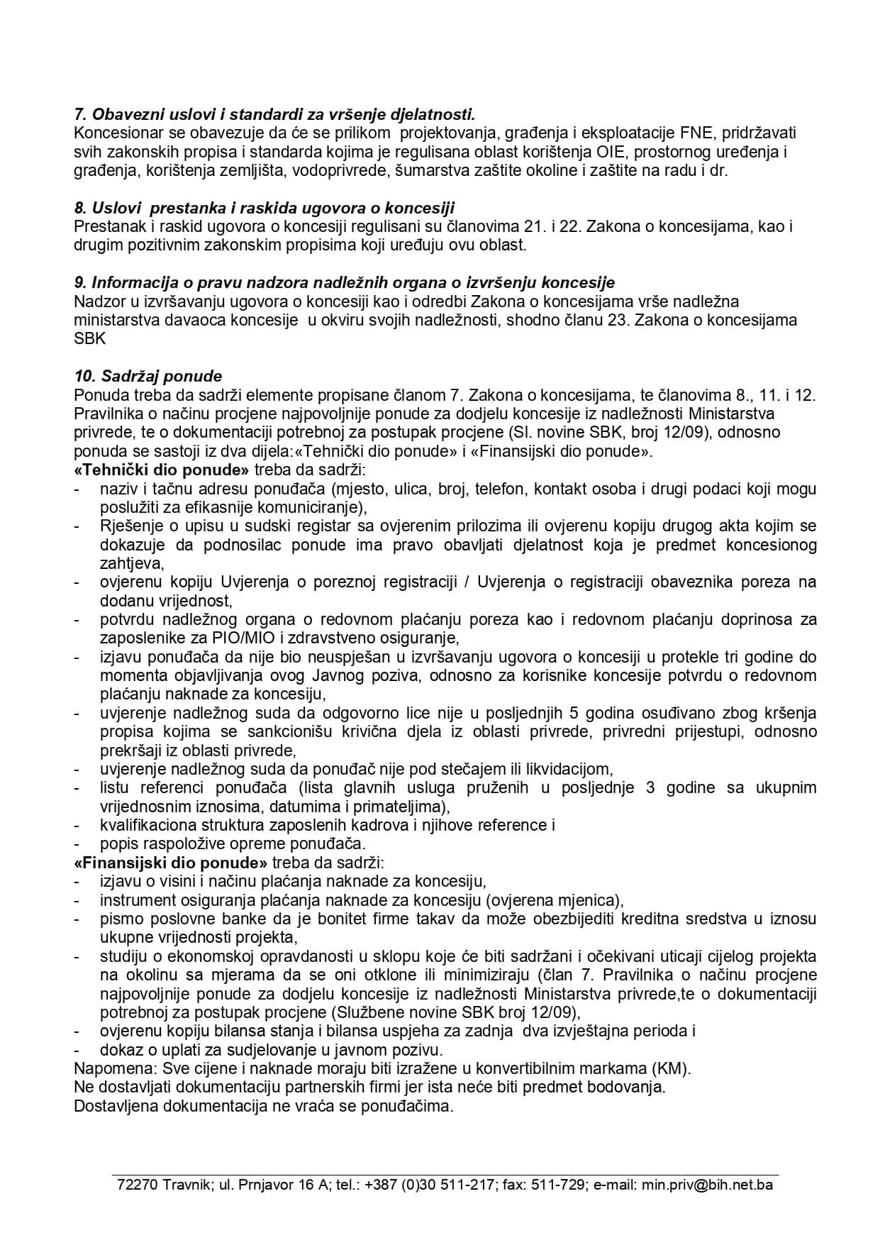 za prikupljanje ponuda radi dodjele koncesija za izgradnju solarnih elektrana lokalitet I „Barica-Bašća“ i lokalitet II „Ravan“ općina Fojnica (po samoinicijativnoj ponudi)
