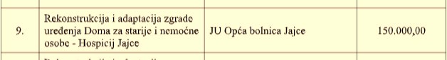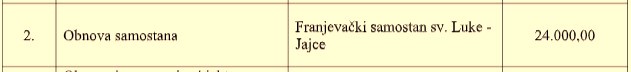 Tako je projektu obnove jajačkog samostana Svetog Luke odobren iznos od 24.000 Eura. Znatno veći iznos je odobren obnovi zgrade stare bolnice koja je namijenjena Domu za starije i nemoćne, odnosno hospiciju u kojemu će se skrbiti o starijim i nemoćnim. Ovom projektu je odobren iznos od 150.000 Eura što će značajno ubrzati početak radova na obnovi ovog objekta.