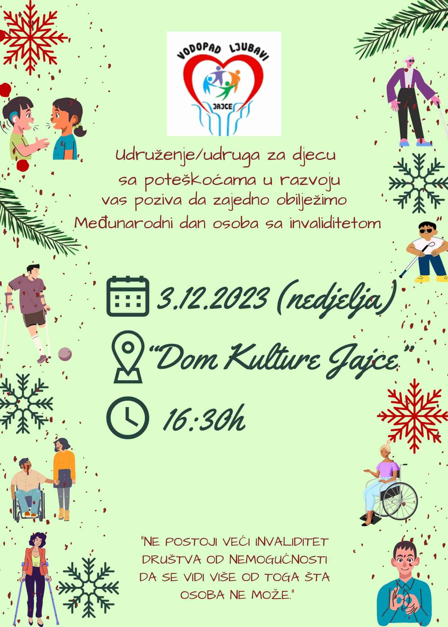 Dragi prijatelji, pozivamo vas i ove godine da nam se pridružite da zajedno obilježimo Međunarodni dan osoba sa invaliditetom