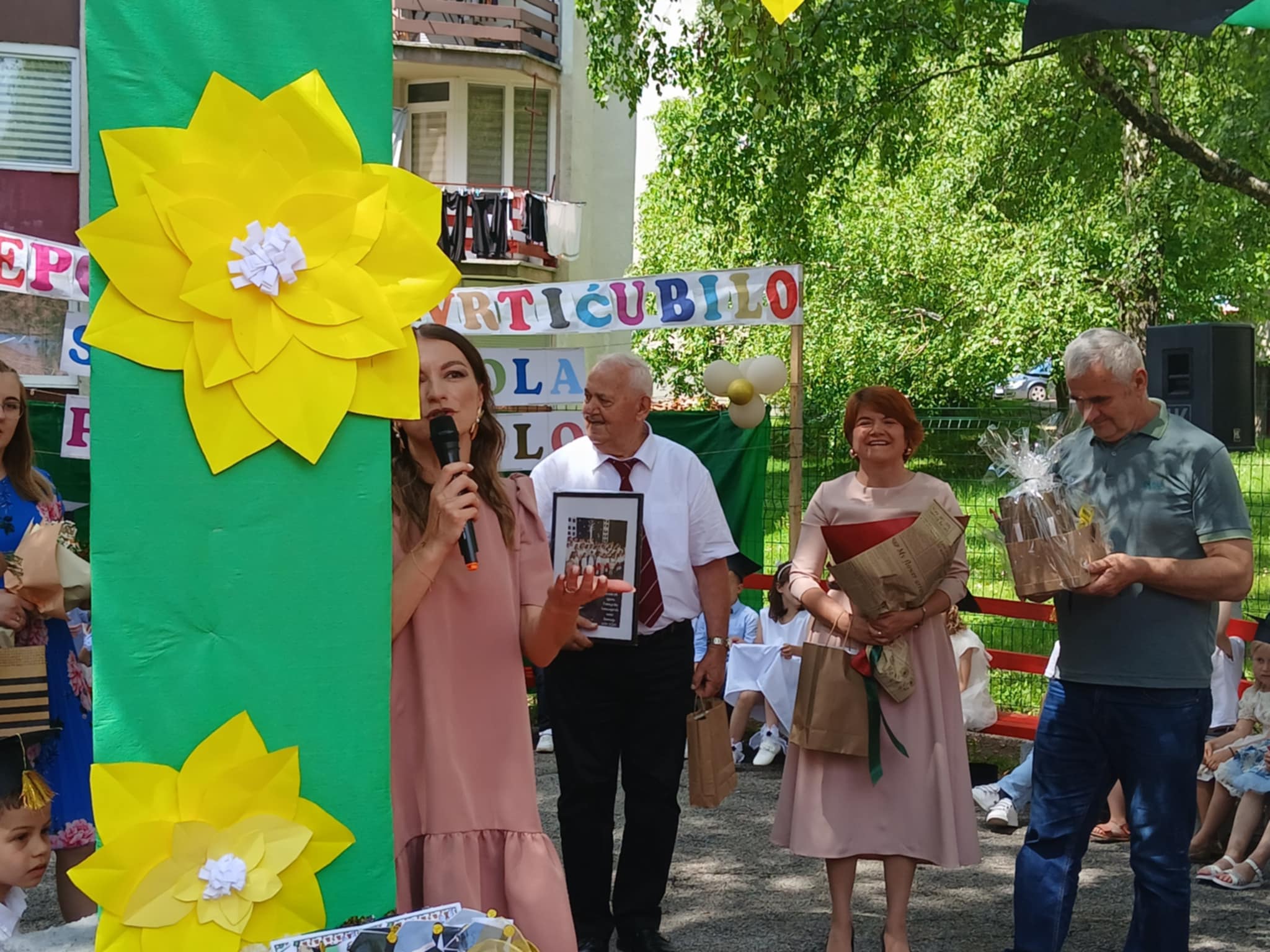Posebno su se zahvalile roditeljima djece koji su sudjelovali na priredbi plešući sa svojom djecom. Kao I prethodnih godina, pred kraj priredbe roditelji djece ‘’vrtićkih maturanata’’ su uručili poklone zahvalnosti odgajateljicama I ostalom osoblju vrtića, a zatim su svi prisutni nastavili druženje u dvorištu vrtića uz ukusne slastice.
