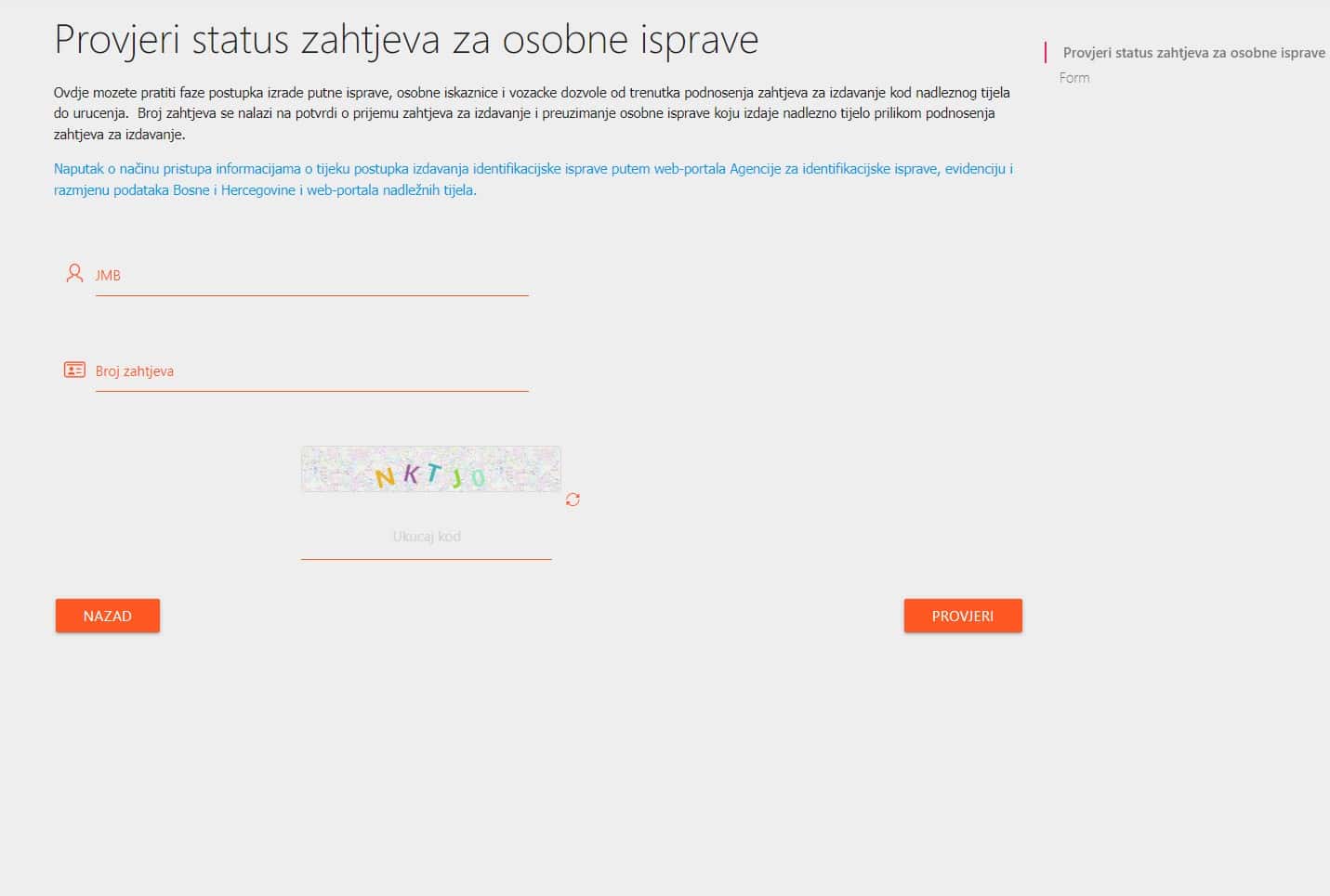 Uslugu lako koristiti a potrebno vam je imati samo JMBG, broj dokumenta ili broj zahtjeva.